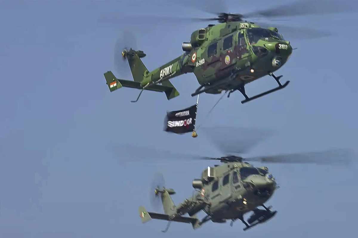 অপারেশন সিঁদুরের বিজয়ধ্বজা উড়িয়ে আকাশে চক্কর কাটে বায়ু সেনার হেলিকপ্টার। কর্তব্যপথেও সেনার তরফে সেনার তরফে ছিল অপারেশন সিঁদুরের সাফল্যের ট্যাবলো। যেখানে ছিল সুখোই যুদ্ধবিমান, এস৪০০ মিসাইল সিস্টেমের মডেল।