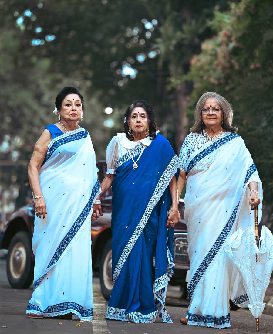 প্রত্যেকের শাড়ির সরু পাড়ে মুগ্ধ করল হ্যান্ড এমব্রয়ডারি। অ্যাকশন, ক্যামেরা-লাইটের বাইরে ফ্যাশন গালিচাতেও যে তিন প্রবীণ অভিনেত্রী কম যান না, তাঁদের বডি ল্যাঙ্গুয়েজেই সেটা স্পষ্ট। প্রতিটি সাজপোশাকে আভিজাত্যের সঙ্গে রুচির মেলবন্ধন ঘটিয়ে আবারও এক অনন্য ফ্যাশন স্টেটমেন্ট তৈরি করলেন অভিষেক রায়।