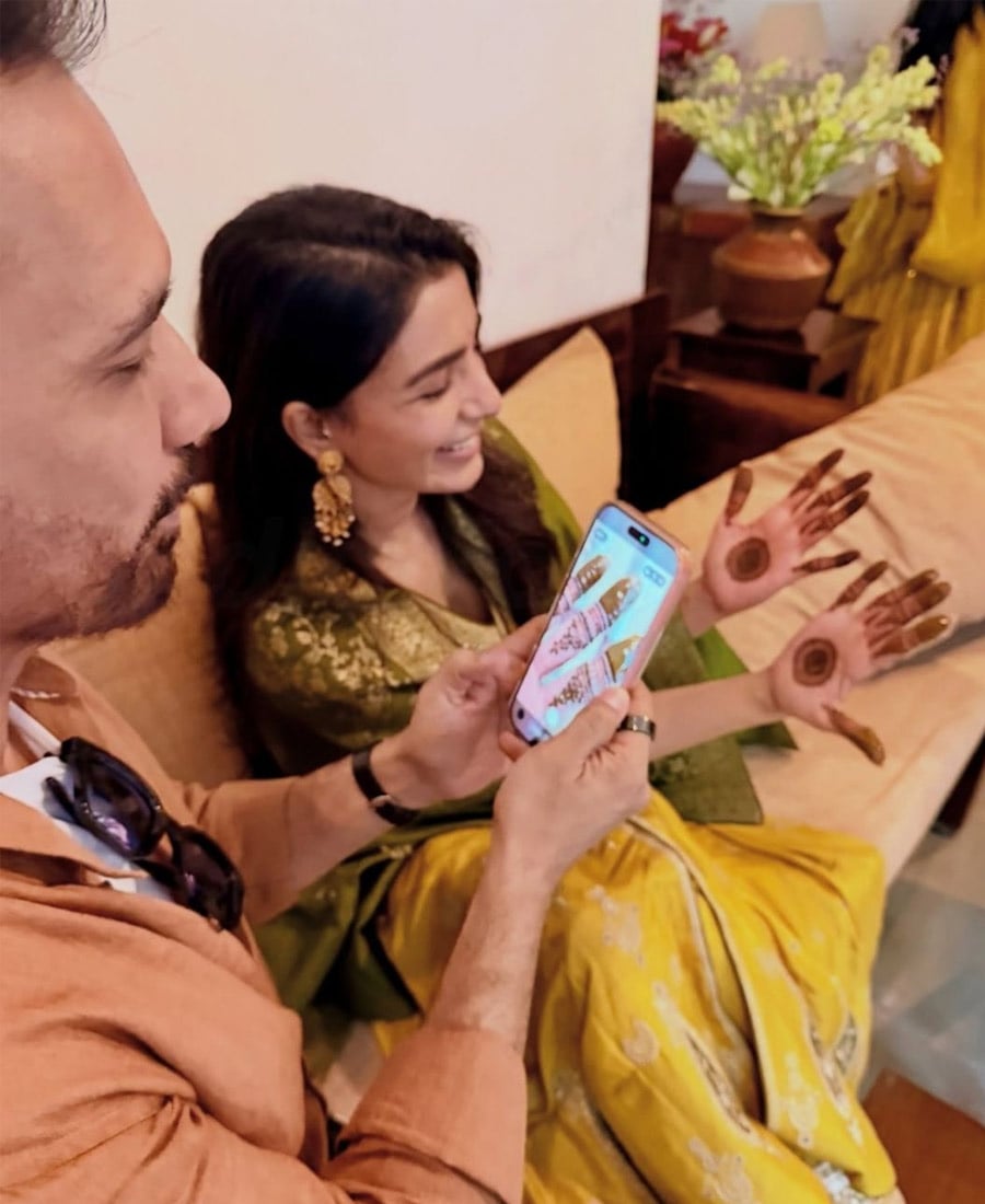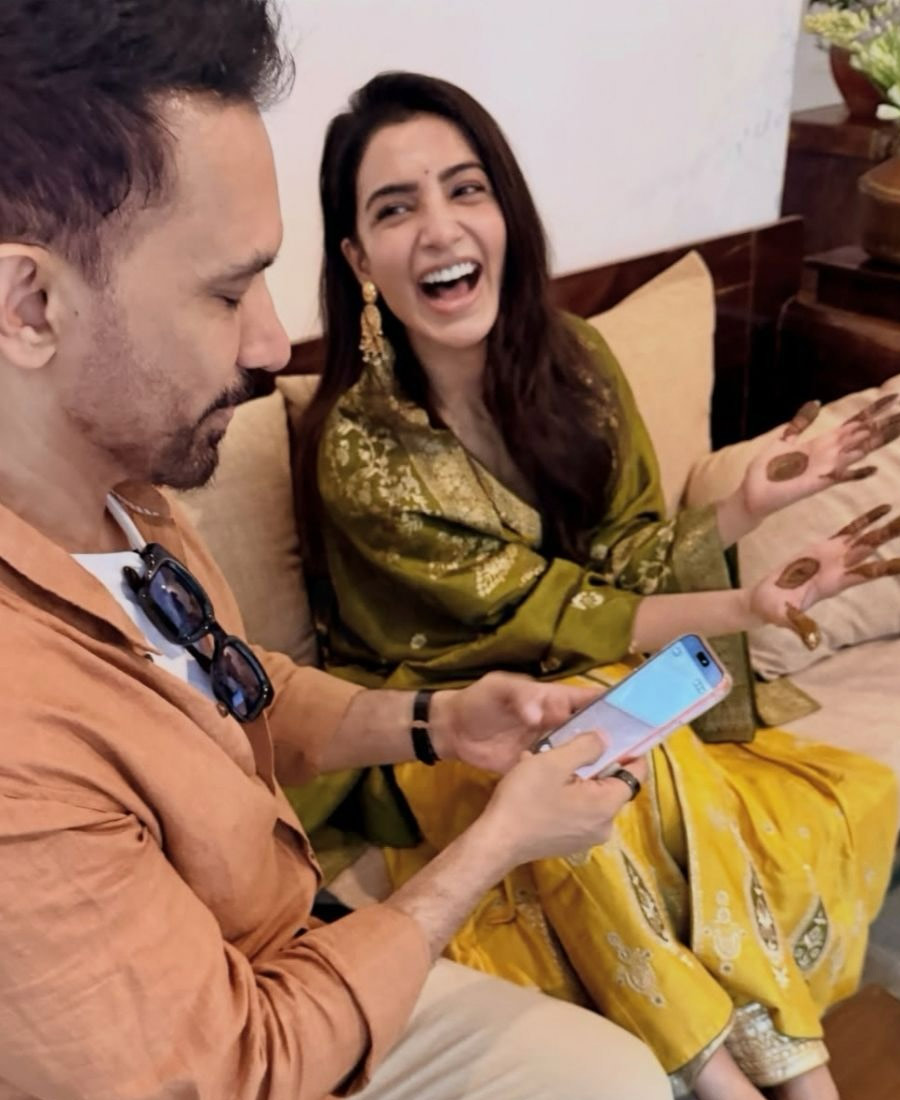 রাজের বোন শীতল নিদিমরু সোশাল মিডিয়ায় নবদম্পতিকে নিয়ে একটি পারিবারিক ছবি পোস্ট করেছেন। সেখানেই দেখা গেল, শ্বশুরবাড়ির সদস্যদের বৃত্তে হাসিমুখে পরস্পরের হাত ধরে ক্যামেরায় পোজ দিয়েছেন রাজ-সামান্থা। নায়িকার ননদের আবেগঘন এহেন পোস্টই বলে দেয় যে, শত নিন্দে-কটাক্ষের মাঝেও সামান্থার পাশে রয়েছে তাঁর শ্বশুরবাড়ি। (ছবি- ইনস্টাগ্রাম)