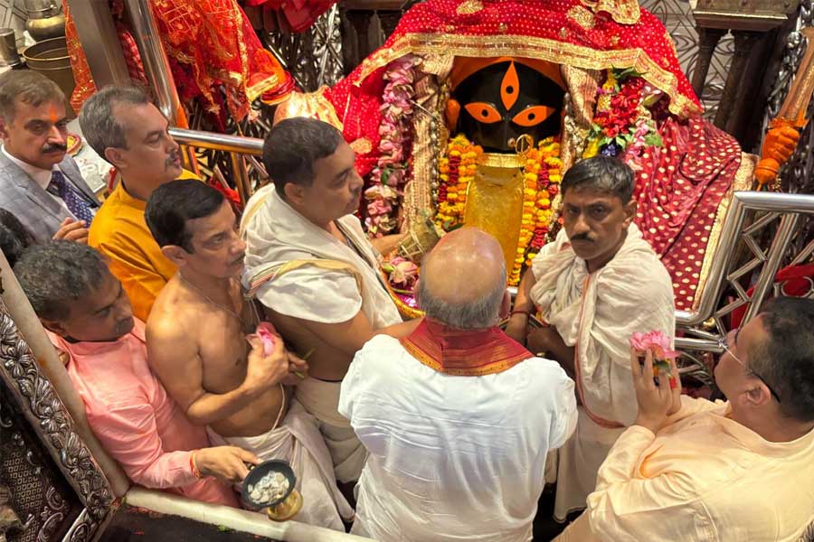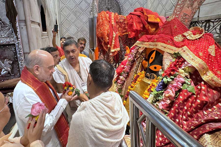 সন্তোষ মিত্র স্কোয়ার থেকে বেরিয়ে কালীঘাট মন্দিরে যান অমিত শাহ। সেখানে মা কালীর পুজো দিতে দেখা যায় তাঁকে।
