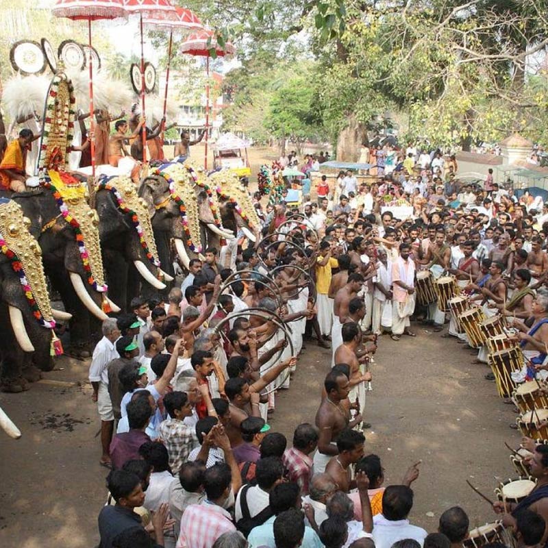 থ্রিসুর পুরম, কেরালা: কেরালার মন্দির নগরী থ্রিসুরে এপ্রিল মাসে আয়োজিত হয় বিশ্বের অন্যতম বড় উৎসব। সাজানো হাতি আর বাদ্যযন্ত্রের সমারোহ দেখার মতো। প্রায় ৩০টিরও বেশি হাতি তাদের স্বর্ণখচিত সাজ নিয়ে শোভাযাত্রায় অংশ নেয়। সারারাত ধরে চলে আতশবাজির প্রদর্শনী। কেরালা সংস্কৃতির প্রকৃত বৈভব দেখতে হলে এই উৎসবে সামিল হওয়া আবশ্যিক।