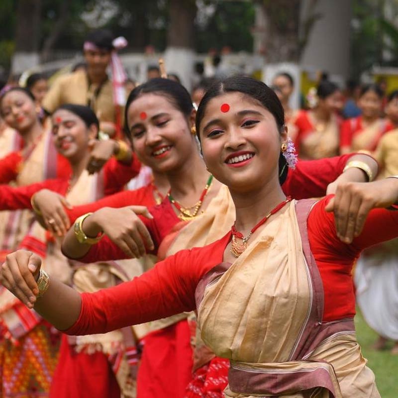 রঙ্গোলি বিহু, অসম: অসমের নববর্ষ বা ব'হাগ বিহু এপ্রিলের প্রাণ। ঢোল আর পেঁপার সুরে গোটা রাজ্য মেতে ওঠে। রঙিন পোশাকে বিহু নাচের দৃশ্য অপূর্ব। এই সময় অসমীয়া পরিবারগুলো বিশেষ পিঠে-পুলি তৈরি করে অতিথিদের আপ্যায়ন করে। অসমের গ্রাম্য প্রকৃতিতে নয়া প্রাণের সঞ্চার ঘটে।