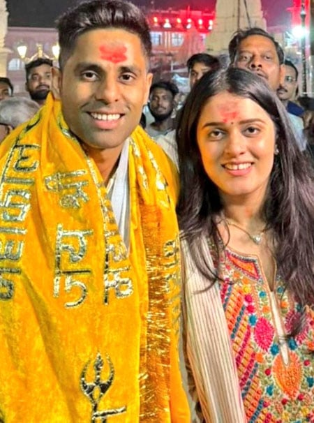 তার আগে সূর্যকুমার উজ্জয়নের মহাকাল মন্দিরে পুজো দিতে যান। সেই ভিডিও সোশাল মিডিয়ায় শেয়ারও করেন ভারতের টি-টোয়েন্টি অধিনায়ক। আর সেই ভিডিওতে অভনীতকেও দেখা যায়।