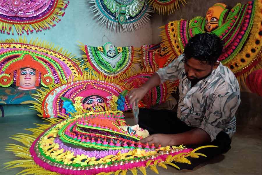 শিল্পী সোমু সূত্রধরের কথায়, "কয়েকদিন আগেই দিল্লিতে ১ লক্ষ টাকার মুখোশ পাঠিয়েছি। দিল্লির মণ্ডপ সেজে উঠবে আমাদের চড়িদার ছৌ মুখোশে। এছাড়া কলকাতা, শহরতলি ও নদিয়া মিলিয়ে আরও ২ লক্ষ টাকার কাজ রয়েছে।" তথ্য ও ছবি: সুমিত বিশ্বাস।