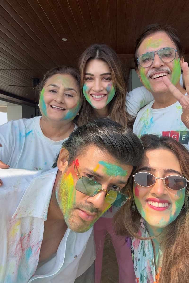 রঙের উৎসবে শামিল কৃতী শ্যাননও। মা-বাবা, বোন নুপূর শ্যানন, জামাই স্টেবিন বেনের সঙ্গে হোলি খেলেছেন নায়িকা। নিজেই সেই ছবি শেয়ার করেছেন সোশাল মিডিয়াতেও। লিখেছেন, 'আমার পরিবারের তরফে আপনাদের হোলির শুভেচ্ছা।'