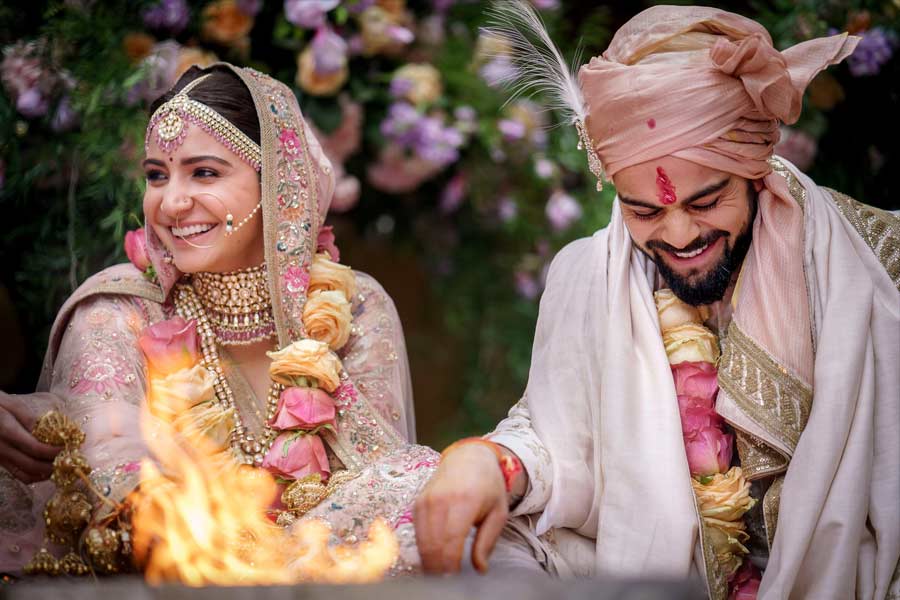 রণবীর সিং ও দীপিকা পাড়ুকোনের মতো আভিজাত্যে ভরা সাজগোজ করতে পারেন। দু'জনে রংমিলান্তি পোশাক পরতে পারেন। তবে রঙের শেড যেন হালকা হয়, সেদিকে খেয়াল রাখুন। পোশাকের সঙ্গে মানানসই গয়নাগাটি পরুন। তা যেন খুব ভারী না হয়।