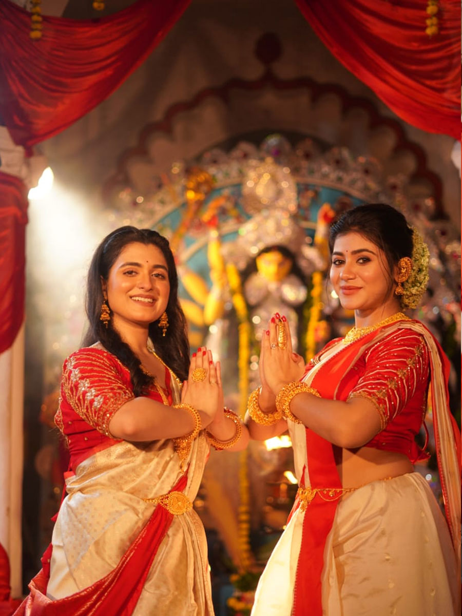 কৃষ্ণেন্দু রাজ আচার্যর সুরে ও কথায় দুর্গা পুজোর এই মিউজিক ভিডিওতে দর্শক দেখতে পাবেন করেছে টলিউড এর দুই মিষ্টি নায়িকা প্রান্তিকা দাস ও এবং শ্যামৌপ্তি মুদলিকে।