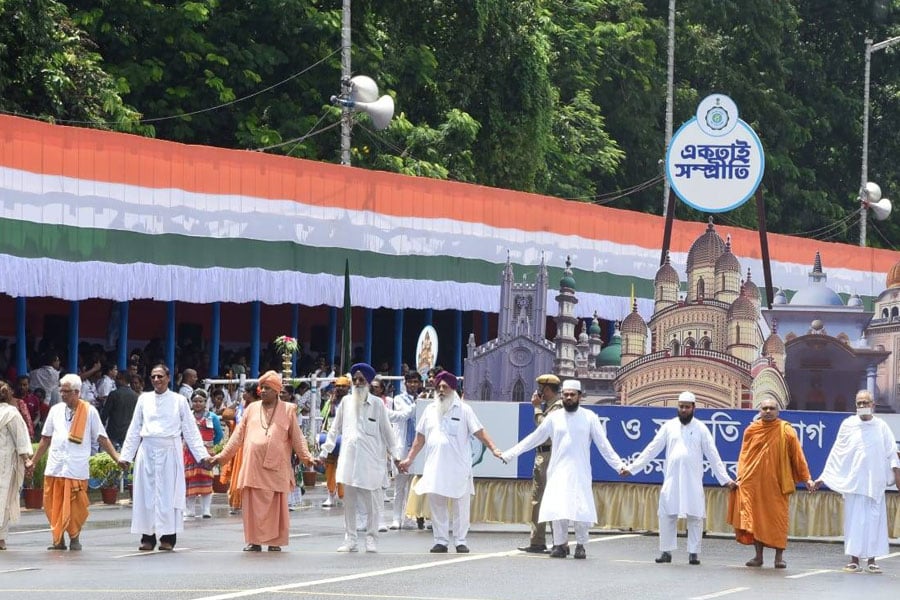 স্বাধীনতা দিবসের মঞ্চে সম্প্রীতির বার্তা। ভারত ধর্মনিরপেক্ষ দেশ। সেই বার্তাই প্রতিফলিত হল রেড রোডে। হিন্দু সন্ন্যাসী থেকে মুসলিম, শিখ, খিস্ট্রান সব সম্প্রদায়ের প্রতিনিধিরা হাতে হাত রেখে দিলেন সম্প্রীতির বার্তা।
