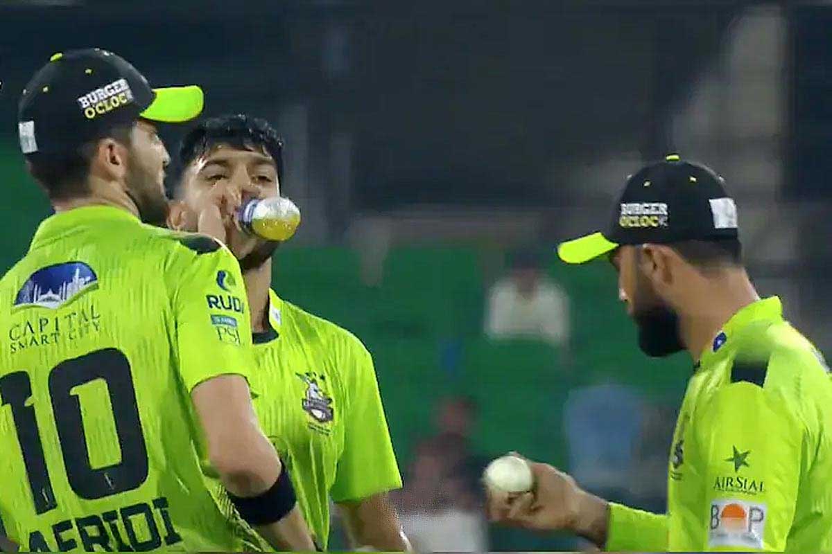 করাচির ইনিংসে ১৯তম ওভারের ঘটনা। শেষ ওভারে জয়ের জন্য কিংসের দরকার ছিল ১৪ রান। বল করতে আসেন হ্যারিস রউফ। রউফের সঙ্গে ছোট্ট আলোচনায় যোগ দেন শাহিন শাহ আফ্রিদি, ফখর জামান। সেখানে একাধিকবার হাতবদল হয় বল। নাটক এখানেই শেষ নয়। দেখা যায়, রউফের হাত থেকে বল নিয়ে তাতে কিছু একটা ঘষছেন ফখর। এর ঠিক পরেই হ্যারিসের হাতে বল তুলে দেন তিনি।