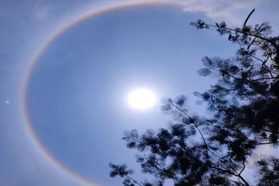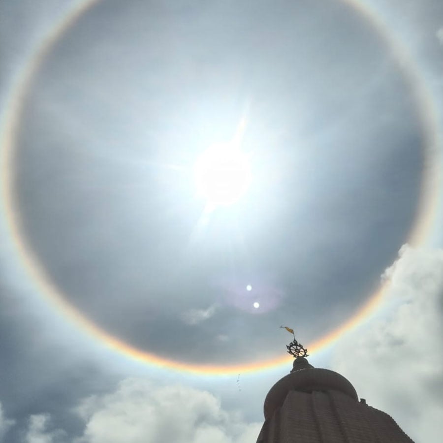 দিঘার মন্দিরে দেখতে পাওয়া সূর্যের চারদিকে বৃত্তাকার বলয়টি একধরনের রামধুন। এই দৃশ্য উপস্থিত ভক্তদের মনে কৌতুহল সৃষ্টি করে। মন্দিরে ভিড় জমান তাঁরা।