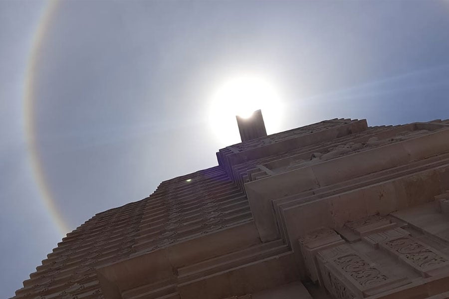 সকাল ১১টা ৩০। দিঘার জগন্নাথ ধাম মন্দিরের মাথায় ফুটে ওঠে মহাজাগতিক বলয়। সূর্যকে ঘিরে বৃত্তাকার বলয় যেন স্বর্গীয় দৃশ্য! এমনটাই মনে করছেন ভক্তরা।