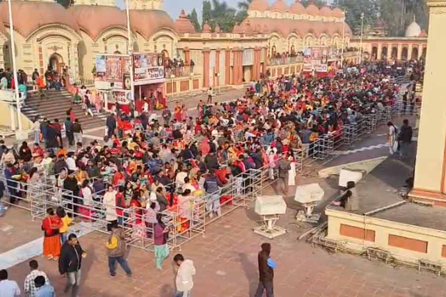 নতুন বছরের প্রথম সকাল। তার উপর আবার কল্পতরু উৎসব। পুজোপাঠ, প্রার্থনায় নতুনকে বরণ করে নেওয়ার পালা। তাই বেশিরভাগ মানুষই বৃহস্পতিবার কাকভোর থেকেই দক্ষিণেশ্বরমুখী। ছবি: শুভজিৎ মুখোপাধ্যায়।