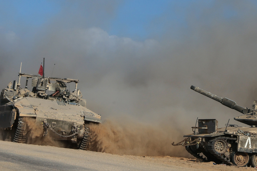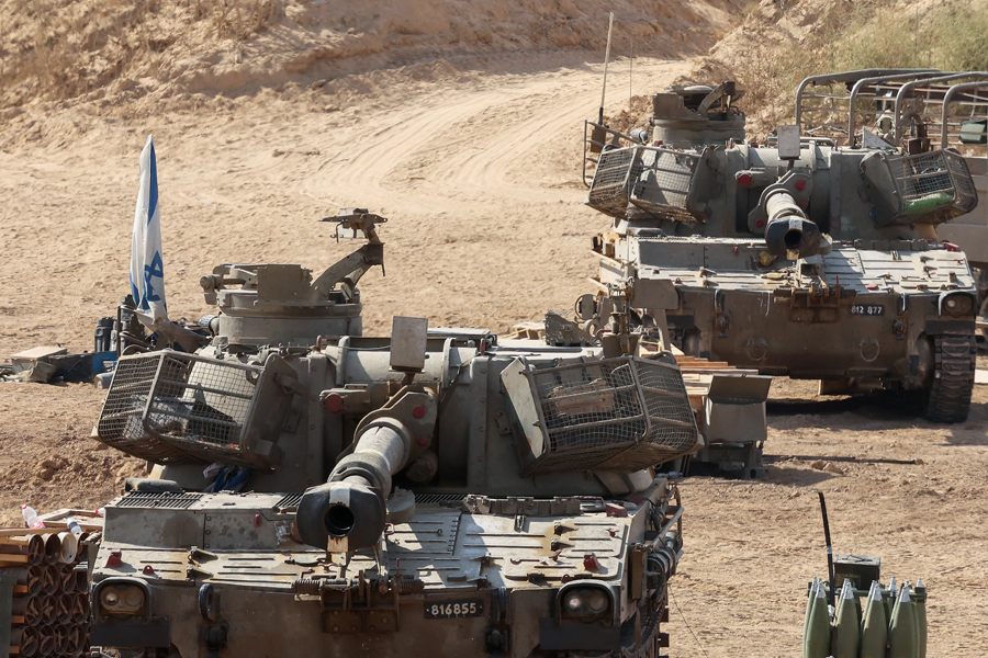 ১৭ সেপ্টেম্বর, বুধবার। গাজা সীমান্তের কাছে মোতায়েন ইজরায়েলি ট্যাঙ্ক। ছবি: এএফপি।