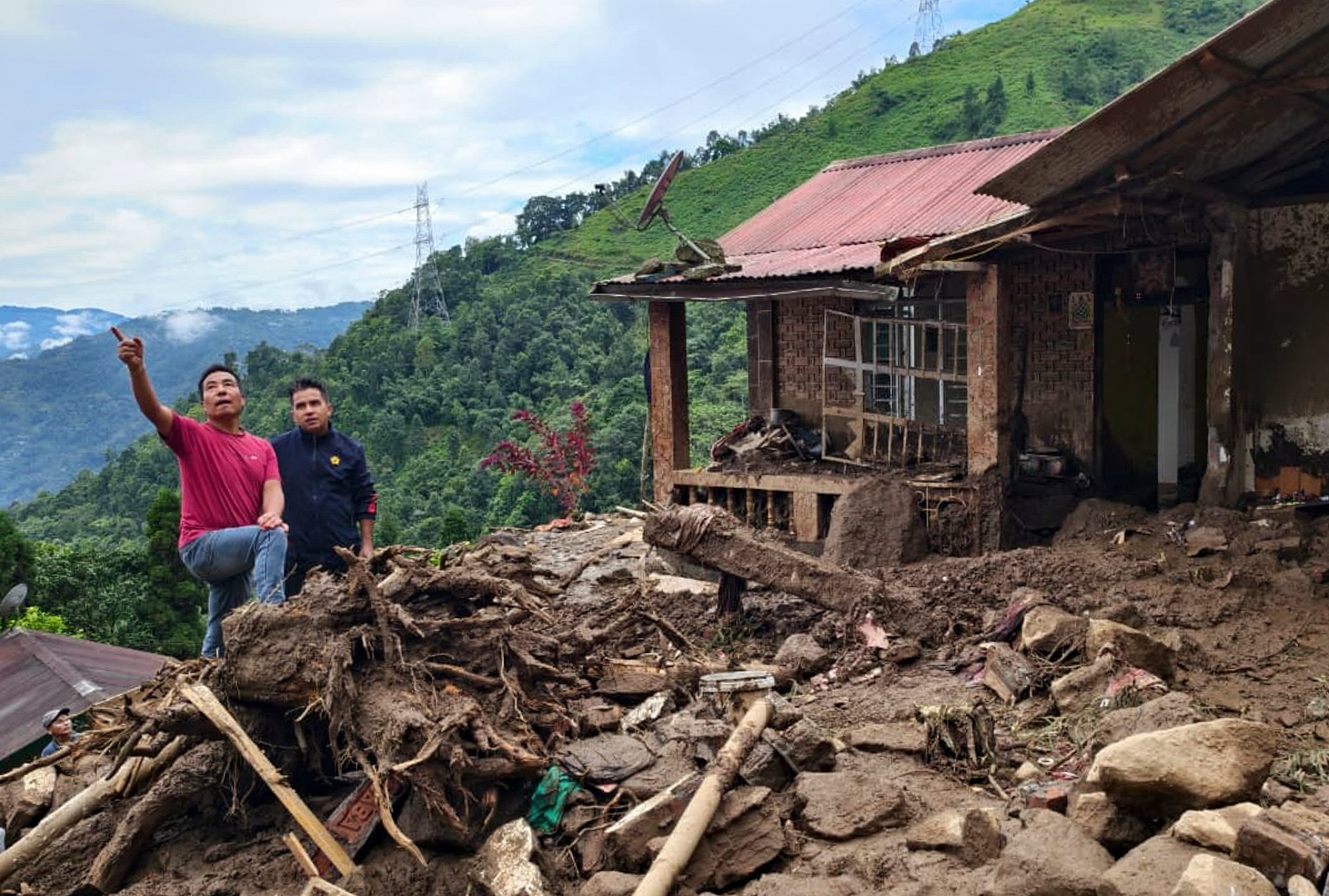 সোমবার, ৬ অক্টোবর, ২০২৫। দার্জিলিং জেলার মিরিকে প্রবল বৃষ্টিতে এবং বজ্রপাতে ক্ষতিগ্রস্ত ভেঙে পড়েছে বাড়ি। ছবি: পিটিআই