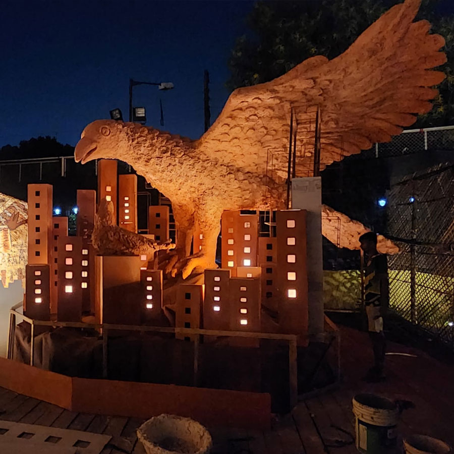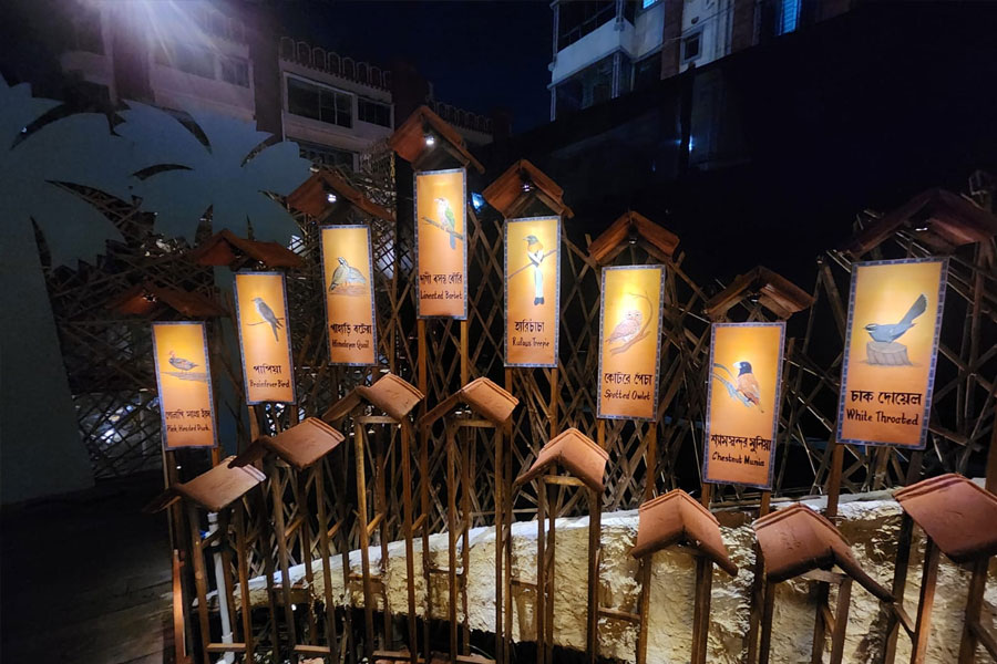 মানব সভ্যতার আগ্রাসনে অনেক পাখির সংখ্যা কমে গিয়েছে সেই বার্তাও তুলে ধরা হয়েছে পুজো মণ্ডপে। ভিতরে আলোকসজ্জাও আপনাকে ভাবাবে।