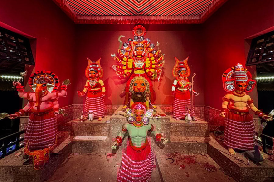 দক্ষিণ কলকাতায় এবার ‘দক্ষিণ ভারত'! নেপথ্যে ৬৬ পল্লী পুজো কমিটি। উত্তর কেরলের বিখ্যাত আদি নৃত্যশৈলি 'থাইয়ম'কে উপজীব্য করে এবার সেজে উঠেছে কলকাতার অন্যতম বিখ্যাত পুজোর মণ্ডপ এবং ঠাকুর। ৭৫তম বর্ষে দর্শনার্থীদের নজর কাড়ছে ৬৬ পল্লীর চমকে দেওয়া শারদ আয়োজন।