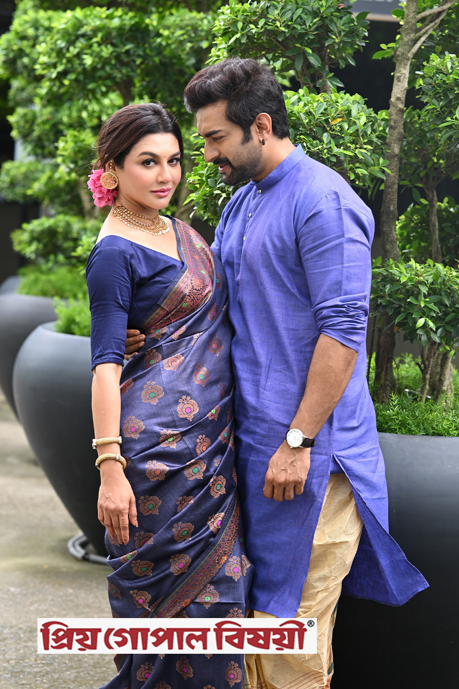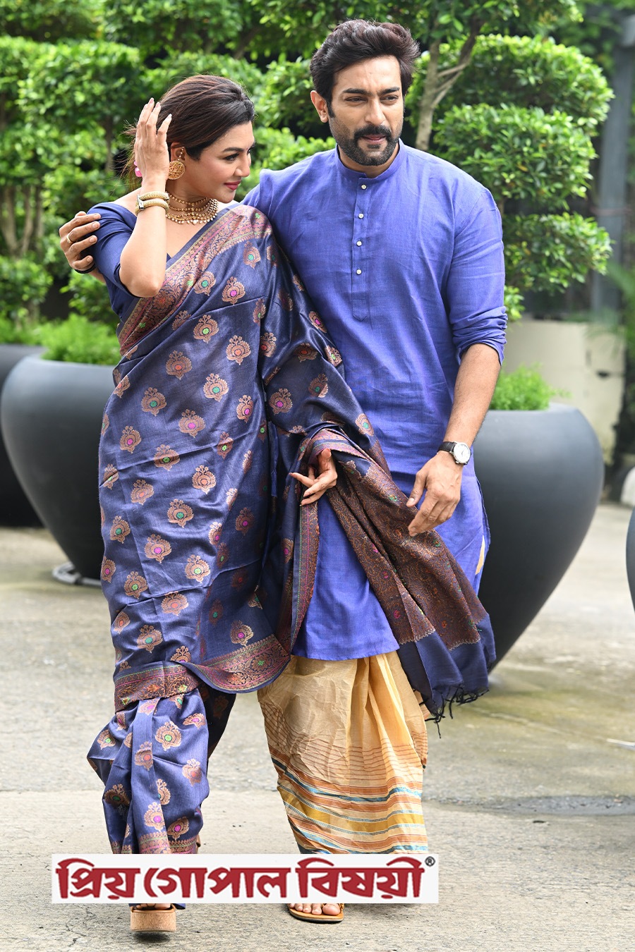 জীতু কামালের পছন্দ তসরের পাঞ্জাবি এবং ধুতি। এক্ষেত্রে অবশ্য রং মিলান্তি পোশাকের পথেই হেঁটেছেন দুই বাংলার দুই তারকা। শুটিং স্থল: দ্য ওয়েস্টিন কলকাতা রাজারহাট, মডেল: অভিনেত্রী জয়া আহসান এবং অভিনেতা জীতু কামাল, পোশাক: প্রিয় গোপাল বিষয়ী, ছবি: শিলাদিত্য দত্ত, অলঙ্কার: আর্দামেন্টস, মেকআপ ও হেয়ার: বাবুসোনা সাহা এবং তনয়া সর্দার, স্টাইলিং: বিদিশা চট্টোপাধ্যায়, শুটিং কোঅর্ডিনেশন: শম্পালী মৌলিক