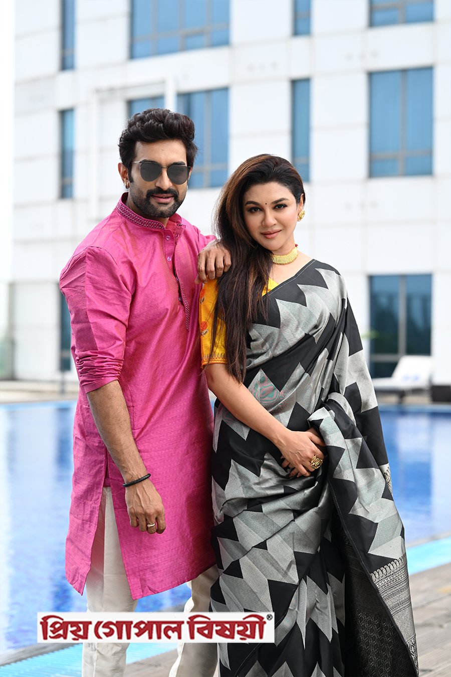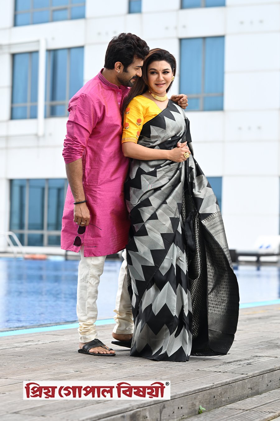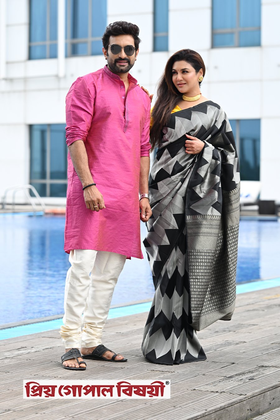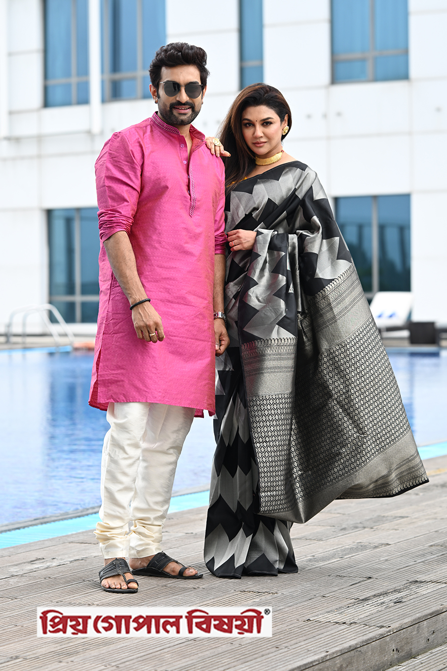 উৎসবের সাজে জয়া আহসান, জীতু কামালের পোশাক সৌজন্যে প্রিয় গোপাল বিষয়ী। 'এক্সক্লুসিভ' সংবাদ প্রতিদিন-এ। [শুটিং স্থল: দ্য ওয়েস্টিন কলকাতা রাজারহাট, মডেল: অভিনেত্রী জয়া আহসান এবং অভিনেতা জীতু কামাল, শাড়ি এবং ধুতি-পাঞ্জাবি: প্রিয় গোপাল বিষয়ী, ব্লাউজ: পরমা, ছবি: শিলাদিত্য দত্ত, অলঙ্কার: আর্দামেন্টস, মেকআপ ও হেয়ার: বাবুসোনা সাহা এবং তনয়া সর্দার, স্টাইলিং: বিদিশা চট্টোপাধ্যায়, শুটিং কোঅর্ডিনেশন: শম্পালী মৌলিক ]