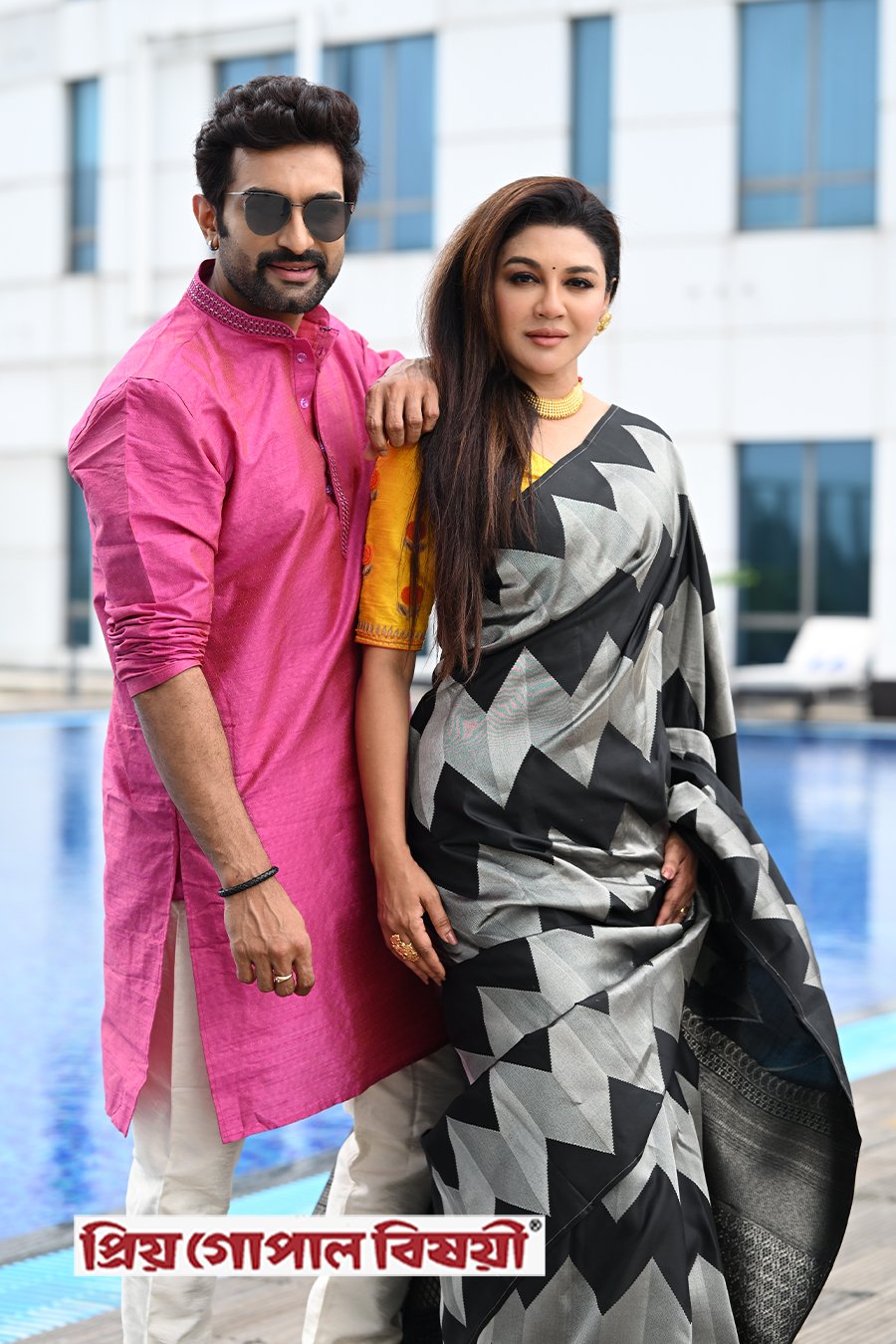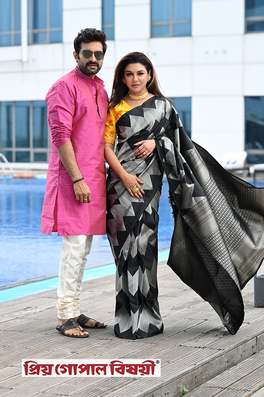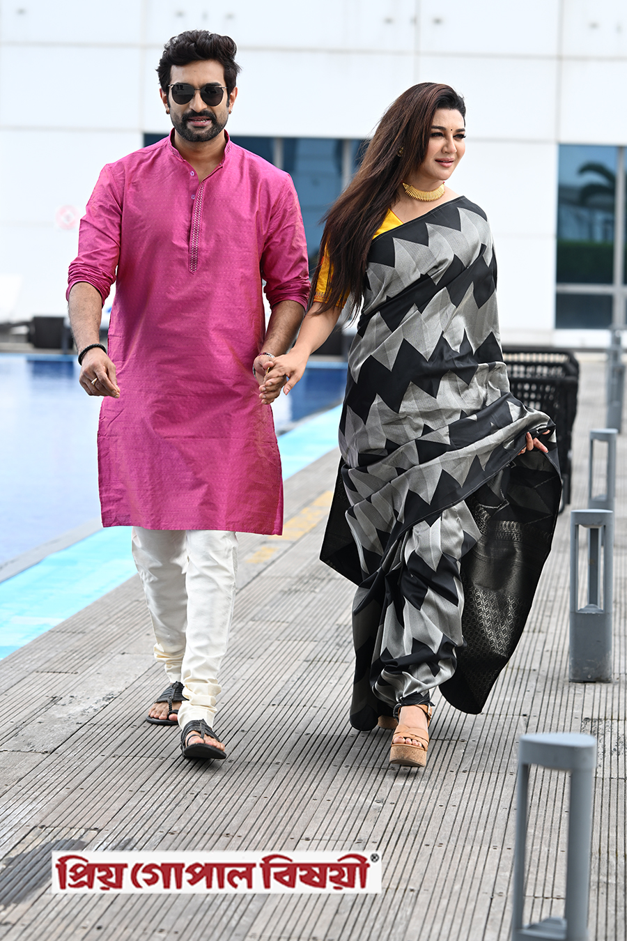 'ফ্যাশন পার্বণ'-এ উৎসবের সাজে ফ্রেমবন্দি দুই বাংলার দুই তারকা।