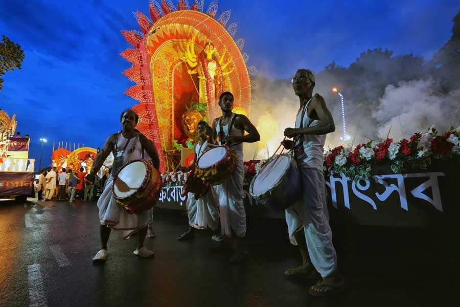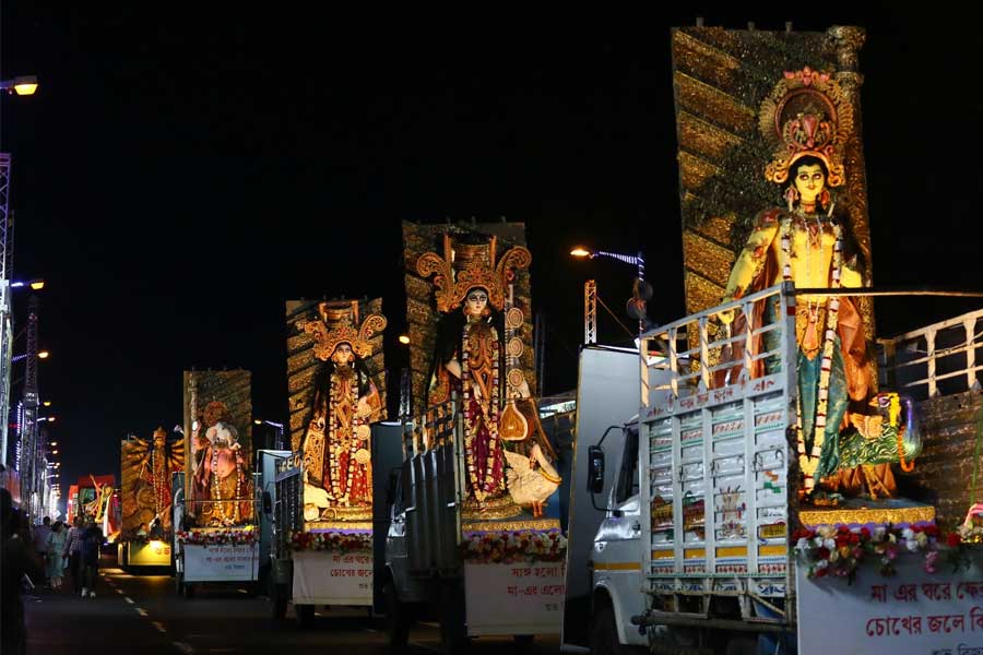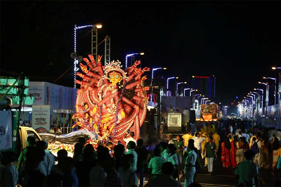 পুজো কার্নিভালে অংশ নিয়েছিল অন্তত শতাধিক পুজো। ছিল উত্তর থেকে দক্ষিণের একাধিক ক্লাব। ছিল শিল্পী সনাতন দিন্দার ভাবনায় তৈরি নলিন সরকার স্ট্রিটের মাতৃ প্রতিমাও।