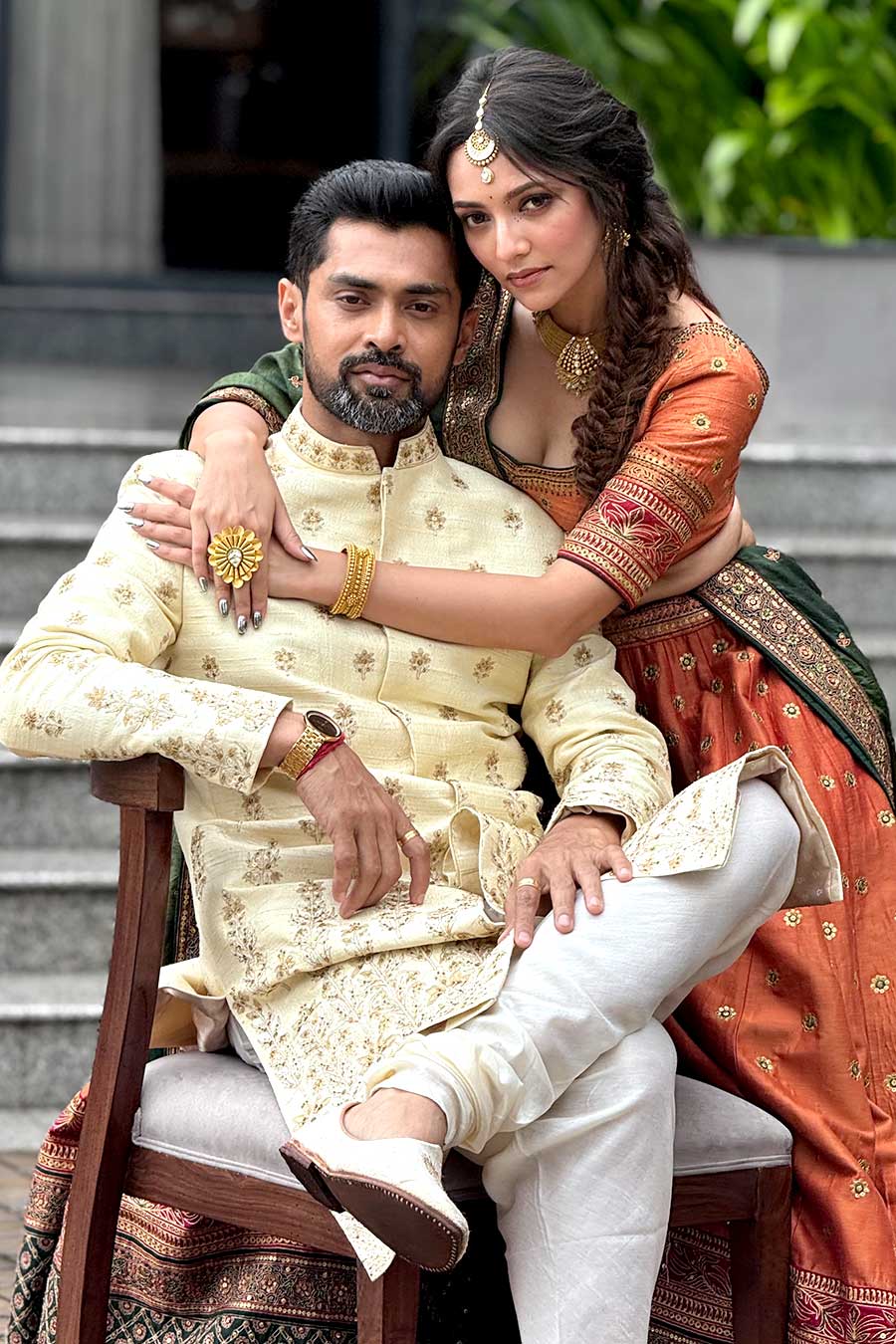 বিয়ের পর প্রথম পুজো হলে দম্পতিরা অনায়াসে শিল্টন-সুস্মিতার মতো সাজতে পারেন। মডেল- শিল্টন পাল, সুস্মিতা চট্টোপাধ্যায়, পোশাক ও স্টাইলিং: অভিষেক নাইয়া, অলঙ্কার: বি সি সেন জুয়েলার্স, চিত্রগ্রাহক: শুভ্ররূপ বন্দ্যোপাধ্যায়, ব্রতীন কুণ্ডু ও সুমন দাস, মেকআপ: কাজু গুহ, হেয়ার: আম্রপালী, লোকেশন: দ্য ডকইয়ার্ড কলকাতা, কোর্ডিনেশন: শম্পালী মৌলিক ও বিদিশা চট্টোপাধ্যায়, প্রযোজনা: বৃষ্টি ভাণ্ডারী