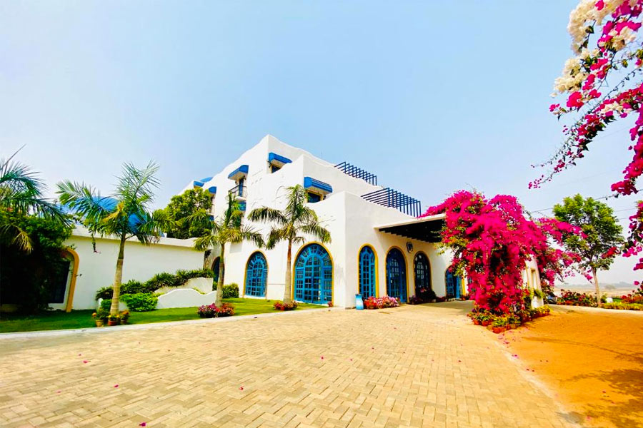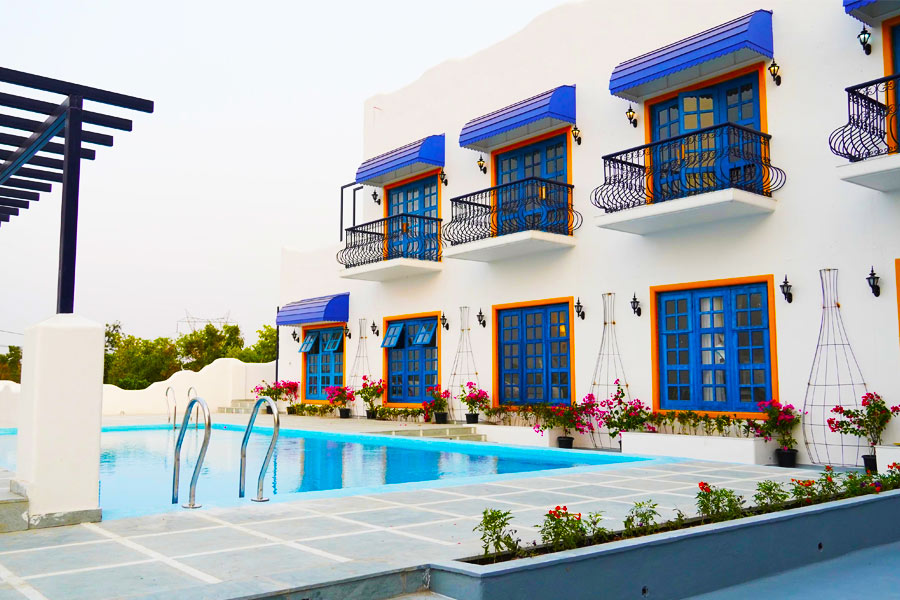 গ্রিসের সান্তোরিনির আদলে তৈরি এই রিসর্টে শুধুই নীল-সাদার ছোঁয়া। তারমাঝে রিসর্টের পথে ইতিউতি ছড়িয়ে বোগেনভেলিয়া গাছ। যা এই জায়গাটিকে আরও সুন্দর করে তুলেছে। পুলসাইডের রোদস্নান থেকে ঠান্ডা পানীয়তে চুমুক, পঞ্চব্যাঞ্জনে ভুরিভোজ, সবরকম ব্যবস্থাপনাই রয়েছে এই রিসর্টে। খরচও সাধ্যের মধ্যেই।