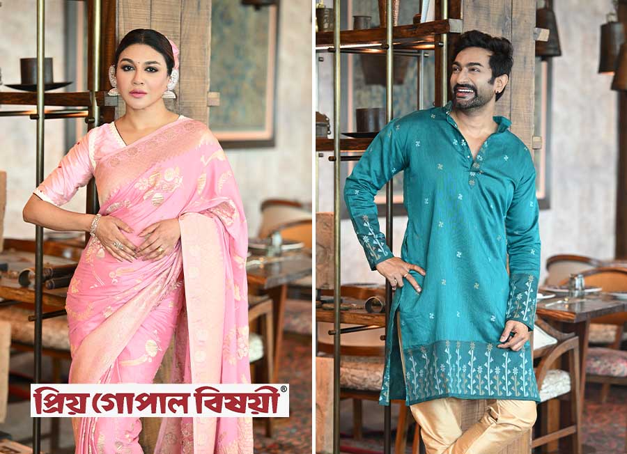পুজোয় নজরকাড়া সাজে নিজেকে তুলে ধরতে চাইলে সপরিবারে যান প্রিয় গোপাল বিষয়ীর যে কোনও শাখায়। যেখানে আভিজাত্য বিকশিত হয় ঐতিহ্যের পরম্পরায়। [শুটিং স্থল: দ্য ওয়েস্টিন কলকাতা রাজারহাট, মডেল: অভিনেত্রী জয়া আহসান এবং অভিনেতা জীতু কামাল, পোশাক: প্রিয় গোপাল বিষয়ী, ব্লাউজ: পরমা, ছবি: শিলাদিত্য দত্ত, অলঙ্কার: আর্দামেন্টস, মেকআপ ও হেয়ার: বাবুসোনা সাহা এবং তনয়া সর্দার, স্টাইলিং: বিদিশা চট্টোপাধ্যায়, শুটিং কোঅর্ডিনেশন: শম্পালী মৌলিক]