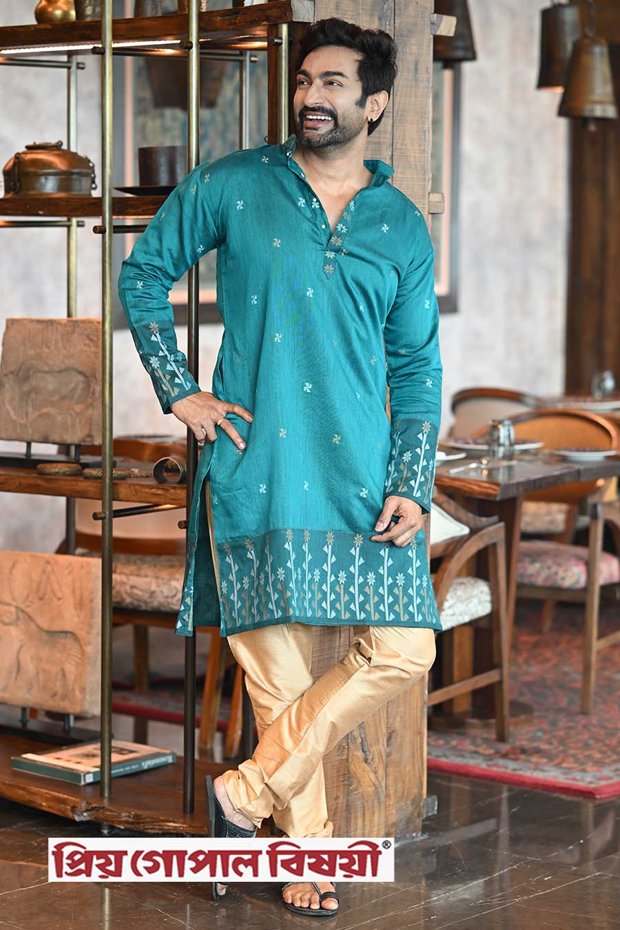 পাঞ্জাবি-পাজামার সঙ্গে যোগ্যসঙ্গত দেবে কোলাপুরী চপ্পল। [শুটিং স্থল: দ্য ওয়েস্টিন কলকাতা রাজারহাট, মডেল: অভিনেত্রী জয়া আহসান এবং অভিনেতা জীতু কামাল, পোশাক: প্রিয় গোপাল বিষয়ী, ব্লাউজ: পরমা, ছবি: শিলাদিত্য দত্ত, অলঙ্কার: আর্দামেন্টস, মেকআপ ও হেয়ার: বাবুসোনা সাহা এবং তনয়া সর্দার, স্টাইলিং: বিদিশা চট্টোপাধ্যায়, শুটিং কোঅর্ডিনেশন: শম্পালী মৌলিক]