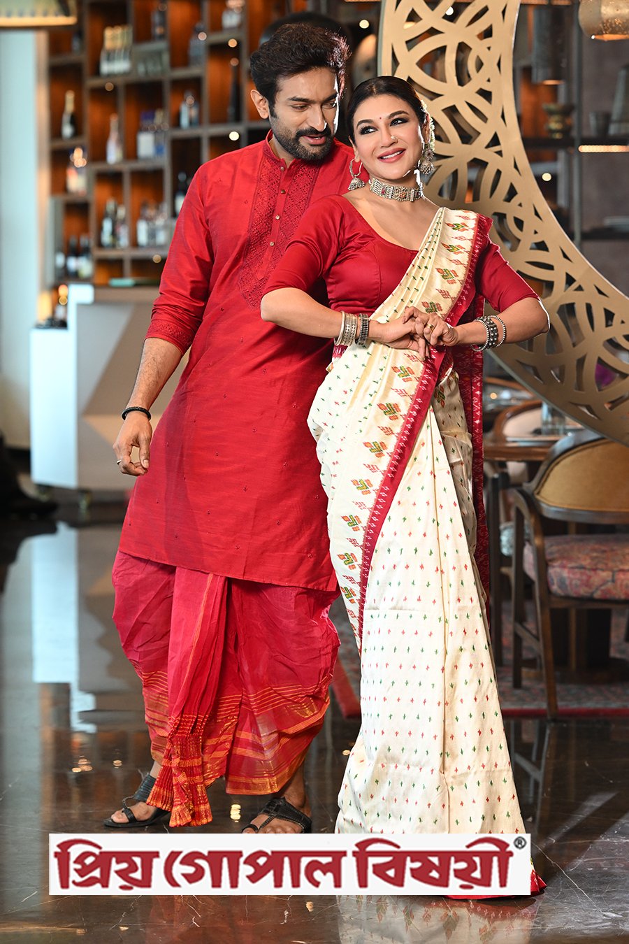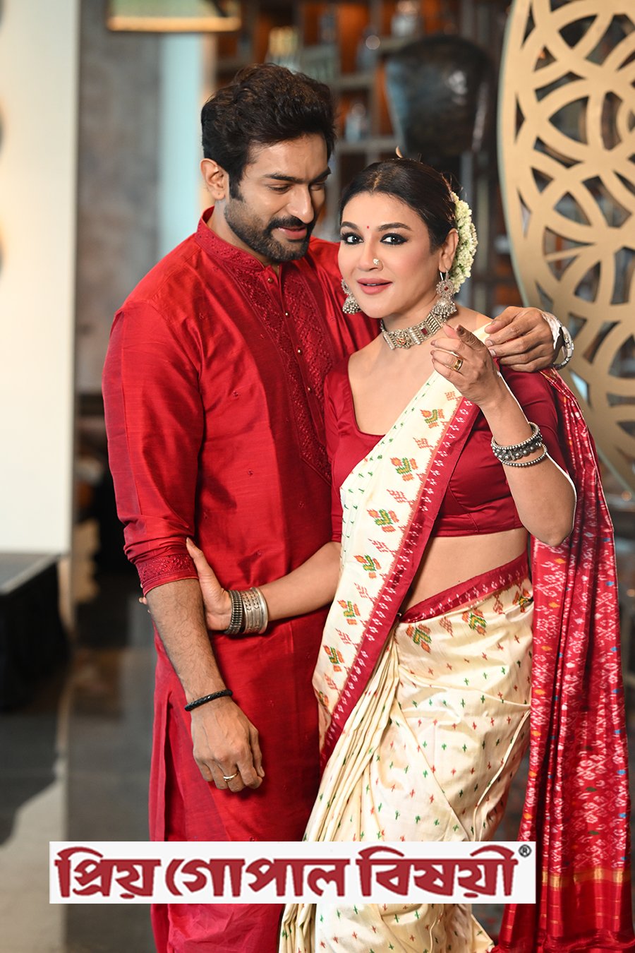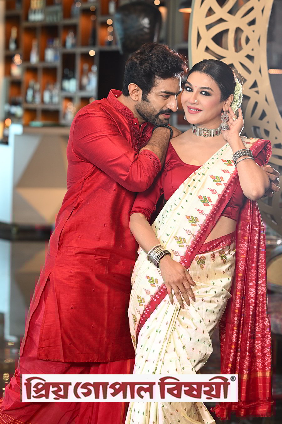 আর জীতুর পরনে মেরুন ধুতি-পাঞ্জাবি। পায়ে কোলাপুরী চপ্পল। শুটিং স্থল: দ্য ওয়েস্টিন কলকাতা রাজারহাট, মডেল: অভিনেত্রী জয়া আহসান এবং অভিনেতা জীতু কামাল, পোশাক: প্রিয় গোপাল বিষয়ী, ছবি: শিলাদিত্য দত্ত, অলঙ্কার: আর্দামেন্টস, মেকআপ ও হেয়ার: বাবুসোনা সাহা এবং তনয়া সর্দার, স্টাইলিং: বিদিশা চট্টোপাধ্যায়, শুটিং কোঅর্ডিনেশন: শম্পালী মৌলিক