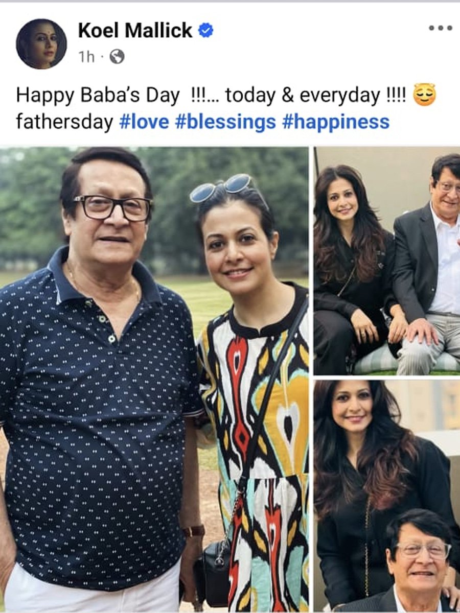 রঞ্জিত মল্লিককন্যা অভিনেত্রী কোয়েল মল্লিক। দুই সন্তানের মা, ইন্ডাস্ট্রিতেও কাটিয়ে ফেলেছেন প্রায় পঁচিশ বছর কিন্তু আজও তিনি সেই ড্যাডিজ গার্ল। এদিন সোশাল মিডিয়ায় বাবার সঙ্গে ছবি পোস্ট করে কোয়েল লেখেন, 'হ্যাপি বাবা'স ডে!!! আজ এবং প্রতিটা দিনই বাবার দিন।'
