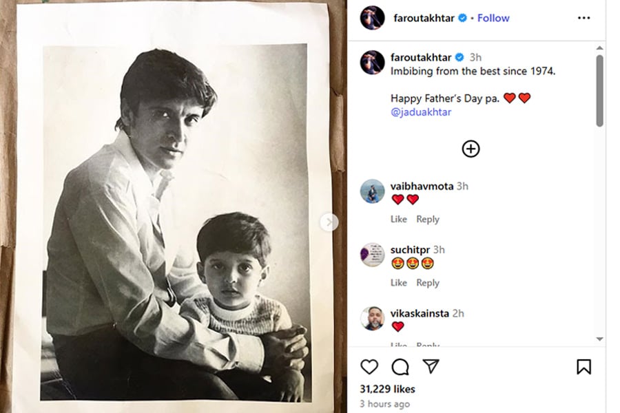 বাবা জাভেদ আখতারের সঙ্গে ছোটবেলার একটি ছবি পোস্ট করে ফারহান আখতার লিখেছেন, '১৯৭৪ সালে তোলা বাবার সঙ্গে সেরা মুহূর্ত। হ্যাপি ফাদার্স ডে পা'।