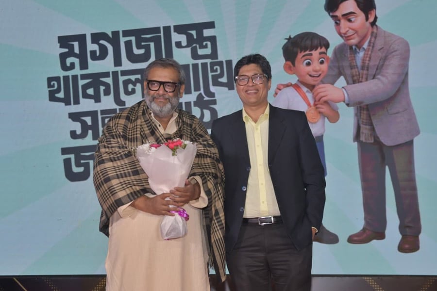 জেআইএস নিবেদিত সংবাদ প্রতিদিন 'সহজ পাঠ ২০২৬'। রথীন্দ্র মঞ্চে খুদেদের সঙ্গে পরিচালক কৌশিক গঙ্গোপাধ্যায়।