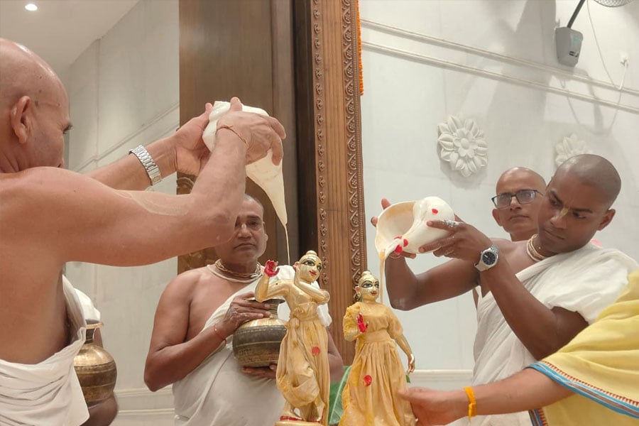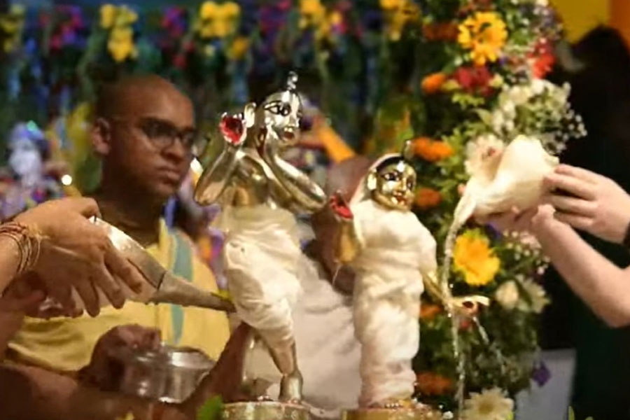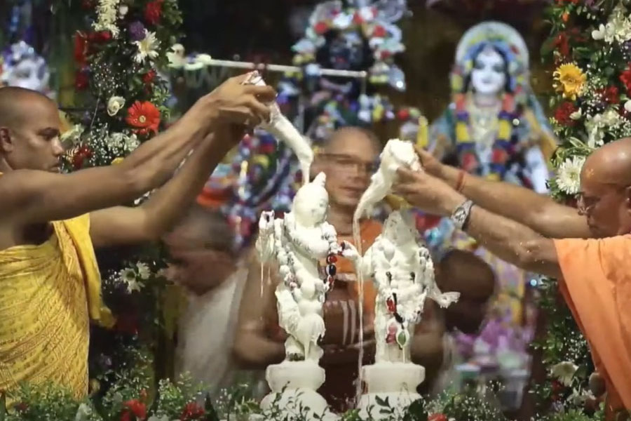 মায়পুর ইসকনে পুজো শুরুর আগে বিভিন্ন ধরনের ফুল দিয়ে সাজিয়ে তোলা হয় রাধারানিকে। রাজকীয় বেশে সাজানো হয়েছে তাঁকে। নির্দিষ্ট নিয়ম মেনে ভোগ নিবেদন করা হয়েছে। তিথি পড়তেই পুজোর শুরুতে দুধ দিয়ে স্নান করিয়ে অভিষেক করা হয় রাধারানির। তবে তিনি একা নন, শ্রীকৃষ্ণেরও অভিষেক করা হয়। ধুমধাম করে সব রিতী পালন করা হয়।