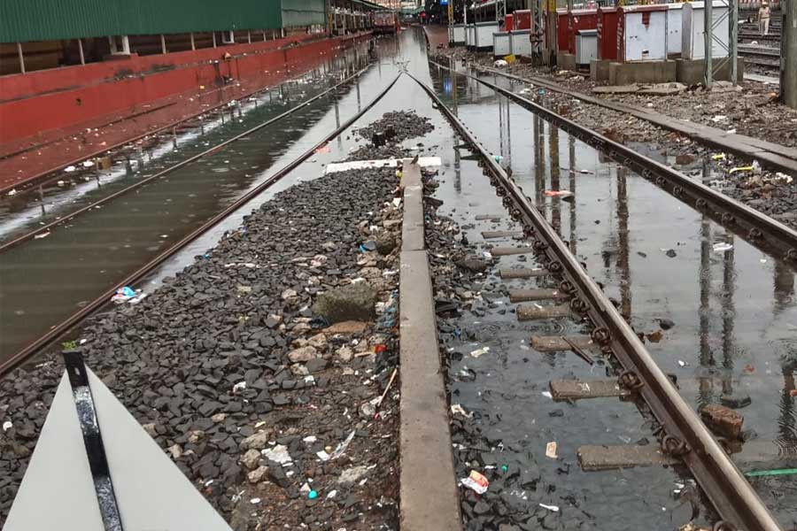 ট্রেন লাইনে জল, রাস্তা যেন নদী! ক্যামেরাবন্দি কলকাতার জল-যন্ত্রণা
