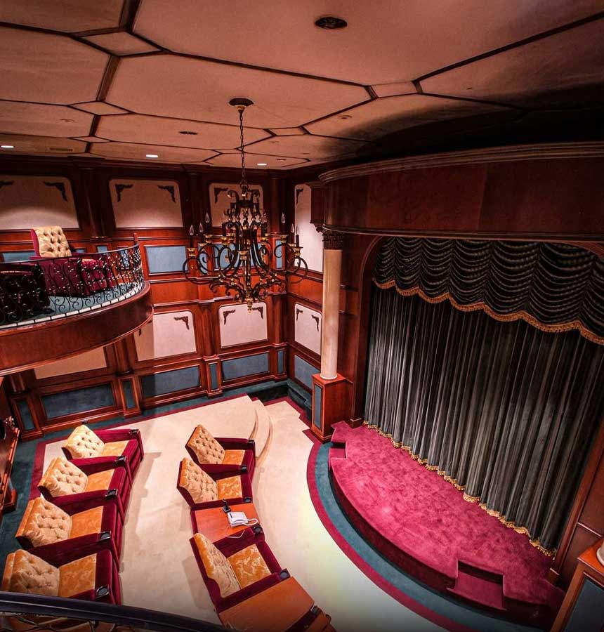 বড়পর্দায় সিনেমা দেখার ব্যবস্থাও রয়েছে অ্যান্টালিয়ায়। রয়েছে বিলাসবহুল থিয়েটার হল। সুসজ্জিত এই হলে একসঙ্গে ৫০ জন পর্যন্ত বসে সিনেমা দেখতে পারেন।