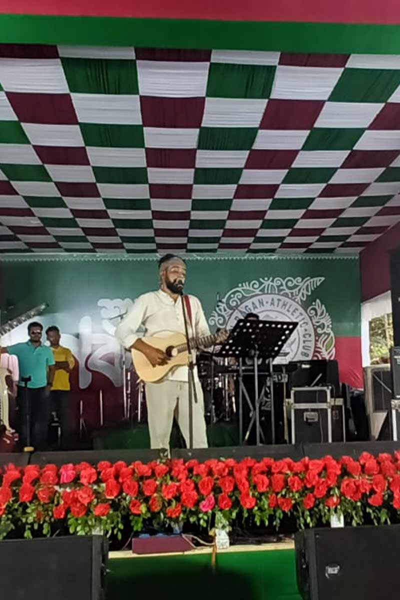 পুজোয় বসলেন মোহনবাগান ক্লাবের সচিব সৃঞ্জয় বোস, সভাপতি দেবাশিস দত্ত, সবুজ-মেরুন অধিনায়ক শুভাশিস বসু এবং মনবীর সিং। ছিলেন সভ্য সমর্থকরাও। শুভাশিস বললেন, "এ বছর ট্রফি জেতাই লক্ষ্য থাকবে। সমর্থকদের এত কাছ থেকে দেখার সুযোগ মেলে এদিনই। বাঙালি ও কলকাতার ছেলে হিসাবে ভাগ্যবান যে, বারপুজোয় থাকতে পেরেছি। এবার যেন ট্রফি আসে, সেই প্রার্থনাই করছি।"