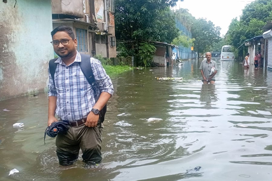 জলে ভাসছে বেনারস রোড, বেলিলিয়াস রোড, পঞ্চানন তলা রোড, ইস্ট ওয়েস্ট বাইপাস, শৈলেন মান্না সরণি। সব থেকে খারাপ অবস্থা মধ্য হাওড়ার। নিজস্ব চিত্র