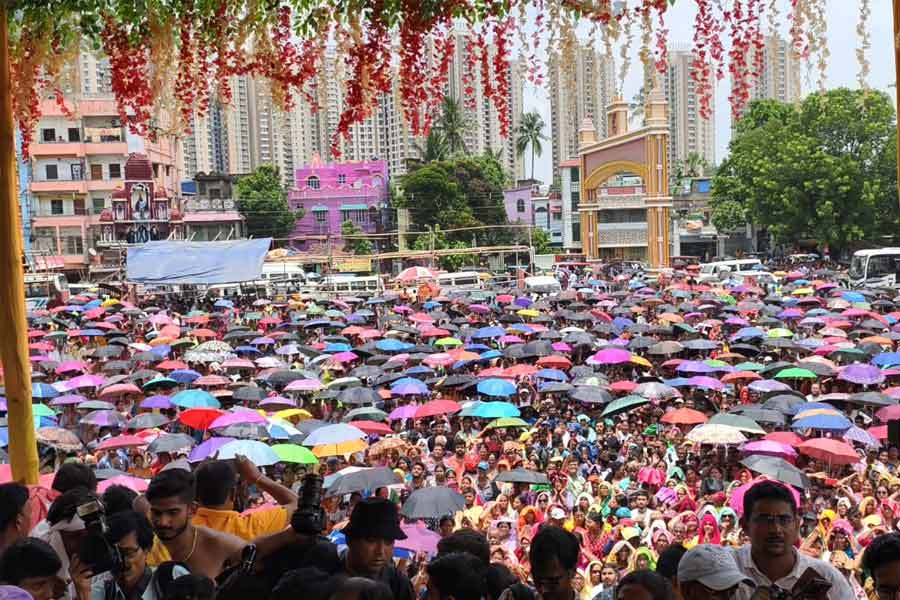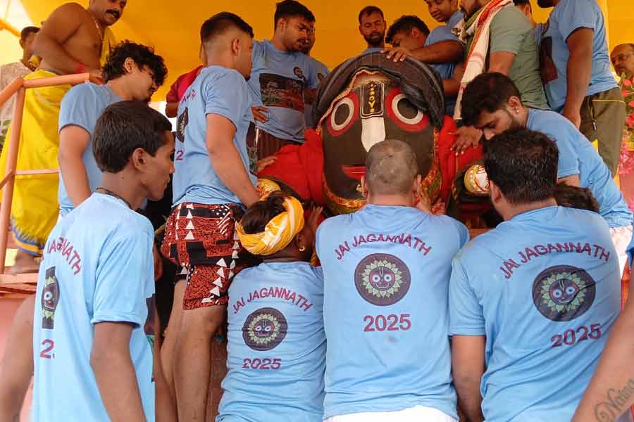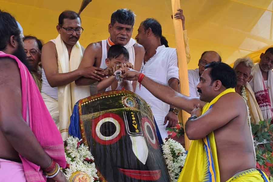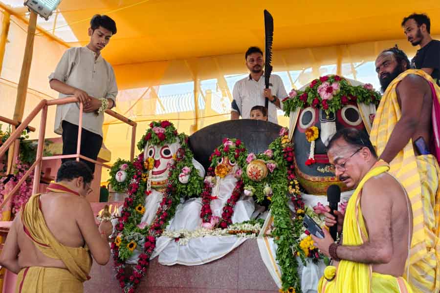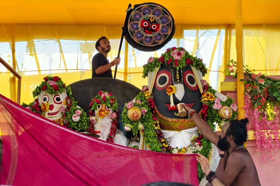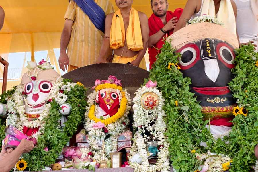 সকাল সাতটায় মন্দির থেকে বার করে আনা হয়েছিল প্রভু জগন্নাথ, বলরাম, এবং সুভদ্রাকে। এরপর শুরু হয় স্নানপর্ব। মন্দির সংলগ্ন স্নান পিরি ময়দানে এই আয়োজন করা হয়েছিল। নিজস্ব চিত্র