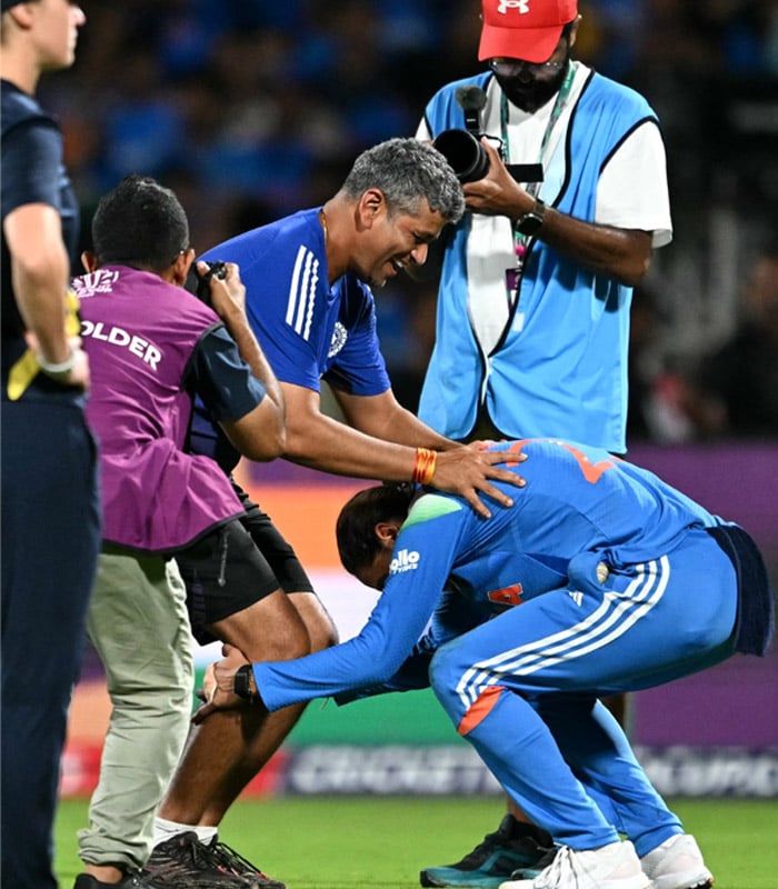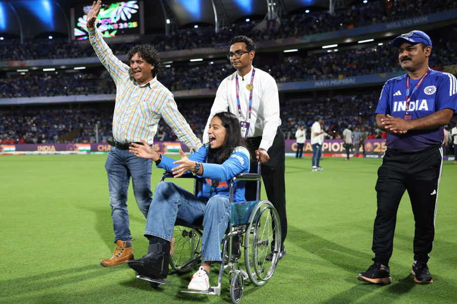 সেমিফাইনাল ফাইনালে চোটের জন্য খেলতে না পারলেও টুর্নামেন্টের গ্রুপ পর্বে অনবদ্য পারফর্ম করেছেন প্রতীকা রাওয়াল। সেই প্রতীকা হুইল চেয়ারে বসে সতীর্থদের সঙ্গে সেলিব্রেট করলেন বিশ্বজয়ের মুহূর্ত।