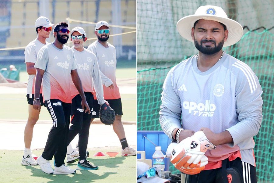 গুয়াহাটিতে গিলের না খেলার সম্ভাবনাই বেশি। তিনি না খেললে তাঁর জায়গায় ভারতকে নেতৃত্ব দেবেন ঋষভ পন্থ। তবে ইডেনে রান পাননি ভারতীয় উইকেটরক্ষক। প্রথম টেস্টের ভুলচুক থেকে শিক্ষা নিয়ে দায়িত্ব নিয়ে জেতাতে চাইবেন তিনি। তবে ইডেন টেস্টে তাঁর অধিনায়কত্ব নিয়ে একাধিক প্রশ্ন উঠেছিল। ছবি: দেবাশিস সেন।