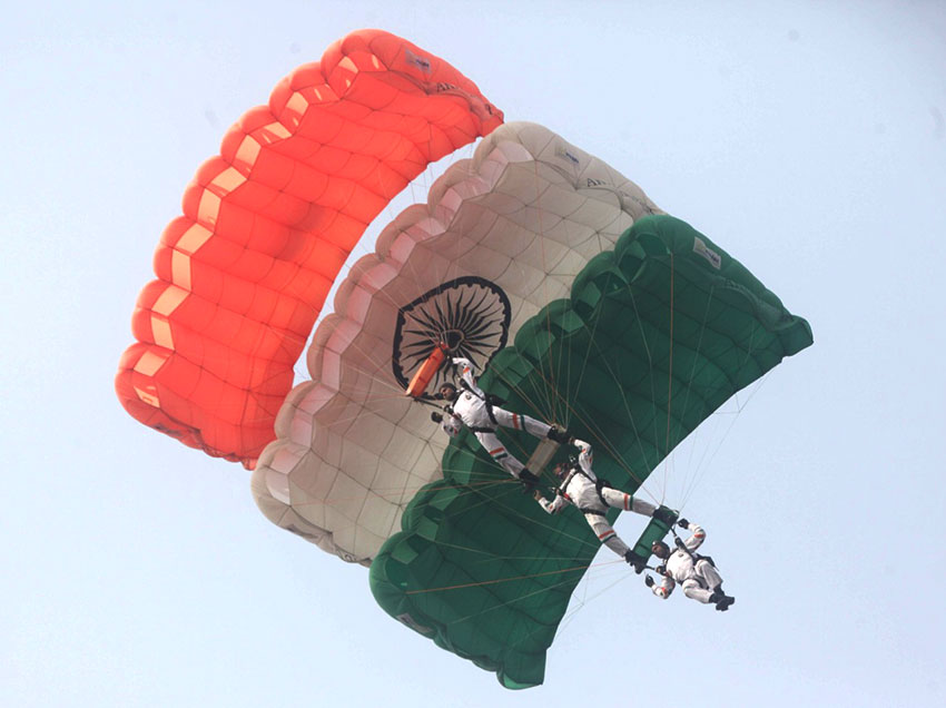 একইসঙ্গে আকাশে চমক আকাশগঙ্গা স্কাই ডাইভারস টিম ও প্যারা ট্রুপারদেরও।