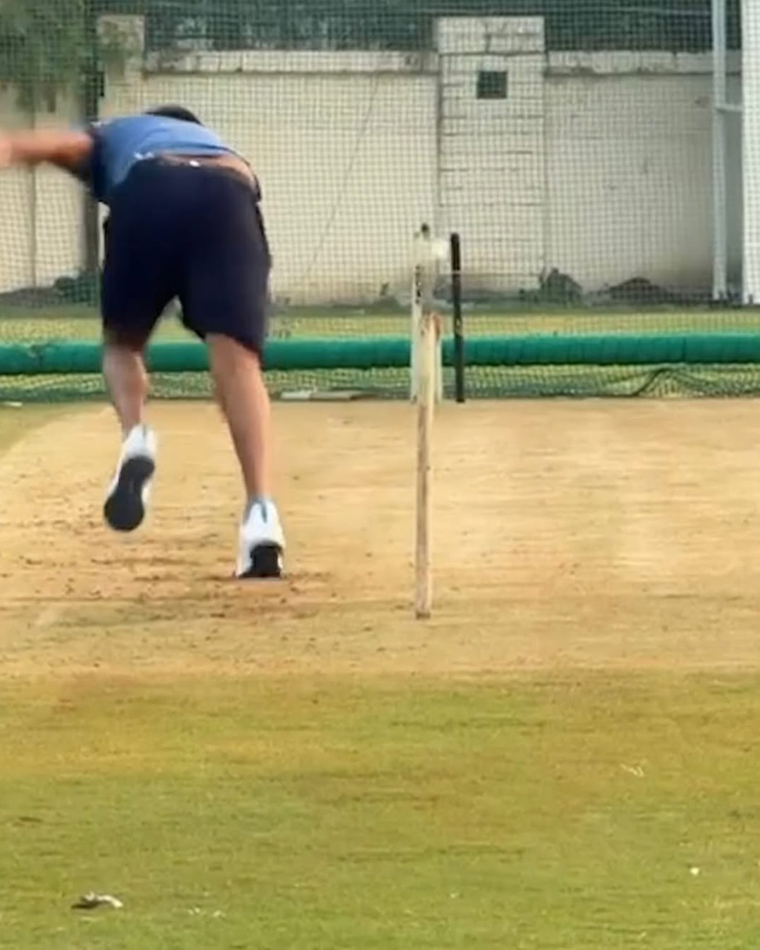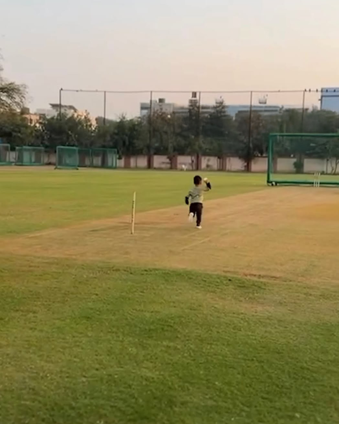 ভারতীয় পেসার বিরক্ত না হয়ে ছেলেকে বুঝিয়ে দেন কীভাবে দৌড়ে এসে বল করতে হয়।