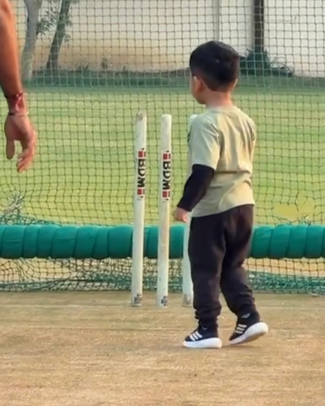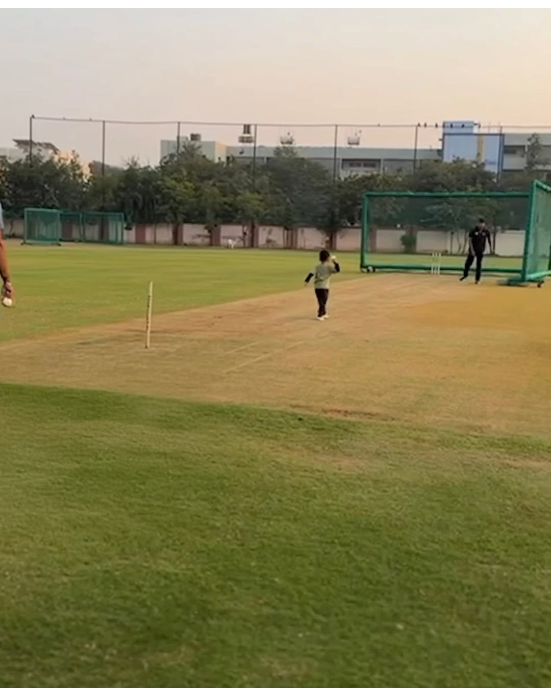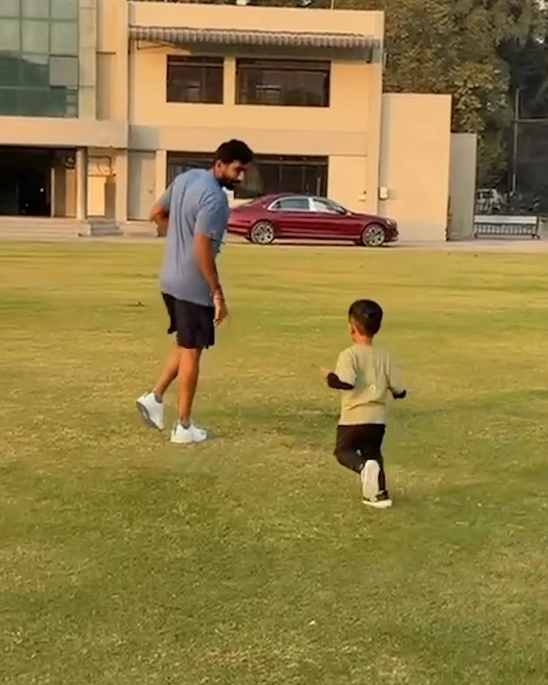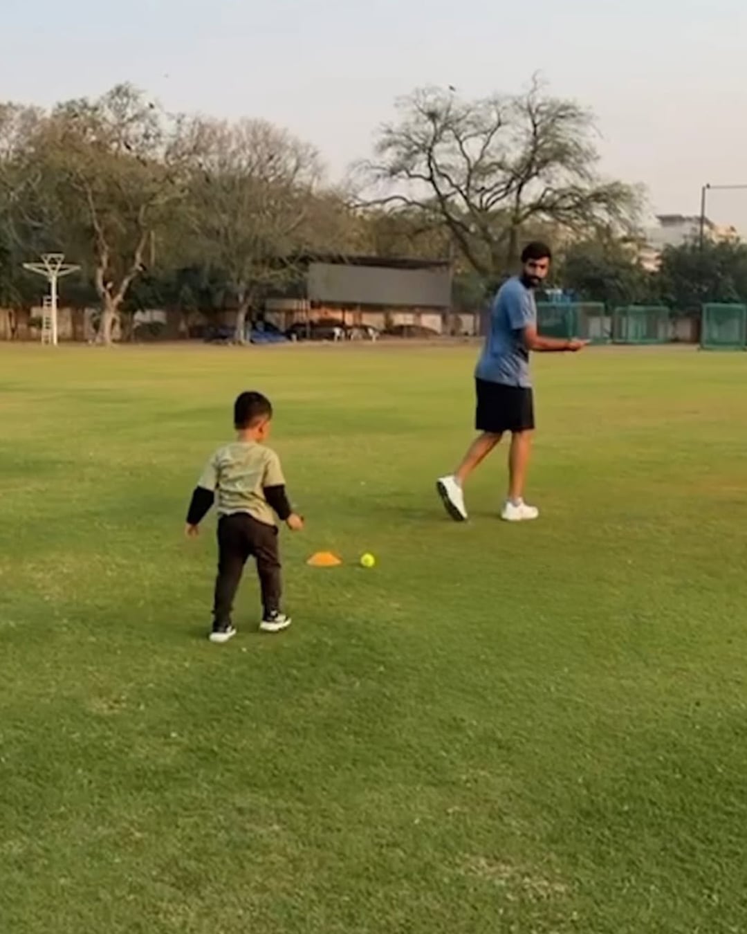 ২০২৩ সালের ৪ সেপ্টেম্বর প্রথম সন্তানের বাবা হয়েছিলেন জশপ্রীত বুমরাহ। ফুটফুটে পুত্রসন্তানের জন্ম দিয়েছিলেন তারকা পেসারের স্ত্রী সঞ্জনা গণেশন। ইনস্টাগ্রামে সুখবর দিয়েছিলেন ক্রিকেটার। তাঁরা নবজাতকের নাম রাখেন অঙ্গদ। সেই জুনিয়র বুমরাহকেই দেখা গেল বাবার সঙ্গে ওয়ার্ম আপ করতে। ভারতীয় পেসারও বিরক্ত না হয়ে ছেলেকে বুঝিয়ে দিলেন কীভাবে দৌড়ে এসে বল করতে হয়।