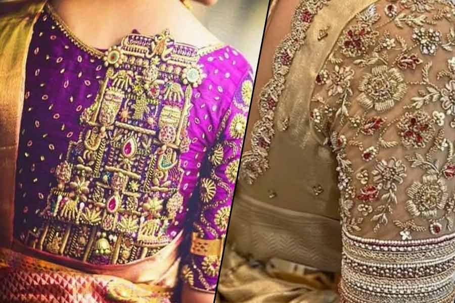 ব্যাকলেস নেট অথবা জারদৌসি কাজের ব্লাউজও কালীপুজোয় পরার জন্য বেছে নিতে পারেন। তবে শাড়ির কাজ যেন খুব বেশি ভারী না হয়, সেদিকে খেয়াল রাখুন। এক রঙের কোনও শাড়ির সঙ্গে এই ধরনের ব্লাউজ পরলে বেশি ভালো লাগবে।
