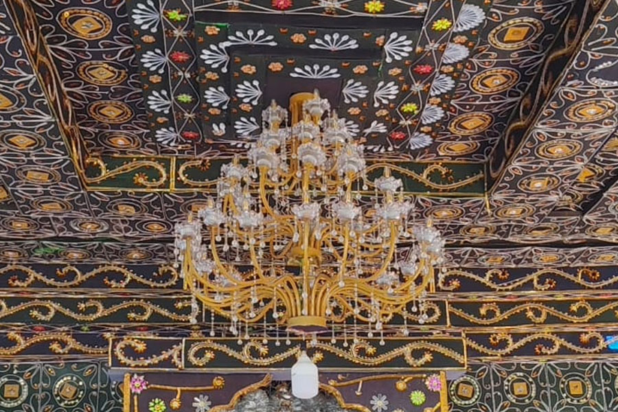 মণ্ডপের চারপাশ সাজানো হয়েছে কয়েক হাজার ইলেকট্রিক প্রদীপে।