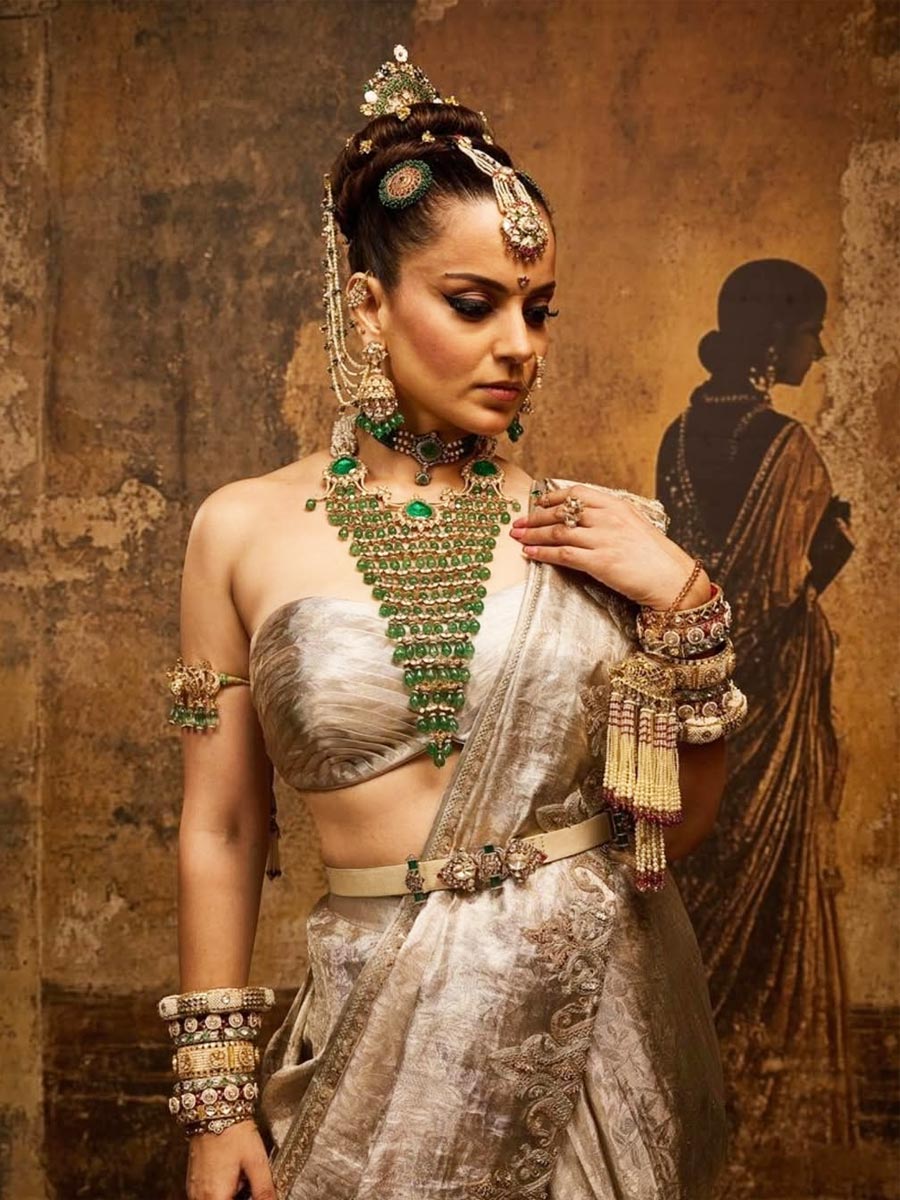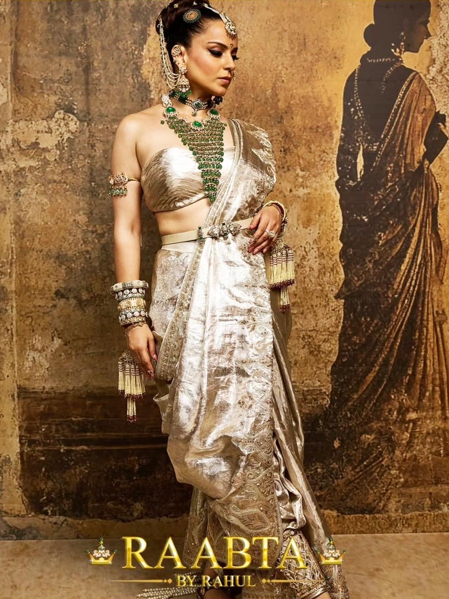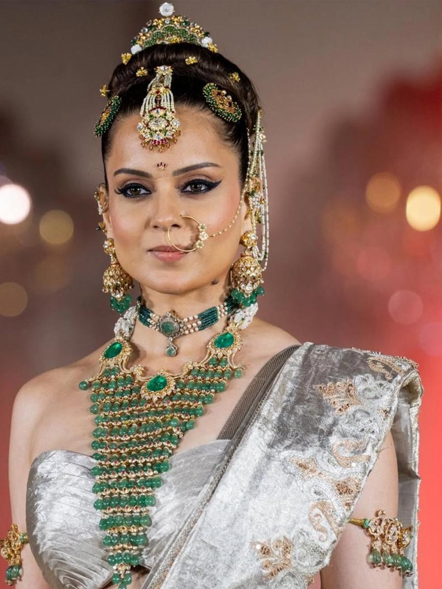 রাহুলের ব্রাইডাল স্পেশাল কালেকশনের জন্য কঙ্গনা বেছে নিয়েছিলেন আইভরি রঙের ভারী কাজের একটি শাড়ি। সঙ্গে কাঁচুলি স্টাইলের রং মিলান্তি ব্লাউজ। গলায় পান্নার নেকলেস। মাথাপট্টি। ফুলে সাজানো খোপায় সাংসদ বুঝিয়ে 'ফ্যাশন ক্যুইন' হিসেবে নিজের ঝাঁজ বুঝিয়ে দিলেন।