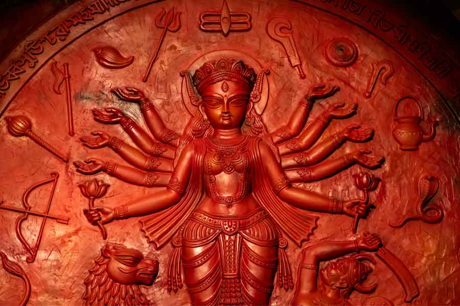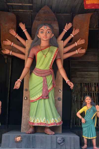 শিল্পী সৈকত বসু তৈরি করেছেন প্রতিমা। মণ্ডপের সঙ্গে প্রতিমা সামঞ্জস্যপূর্ণ, সে বিষয়ে কোনও সন্দেহ নেই।
