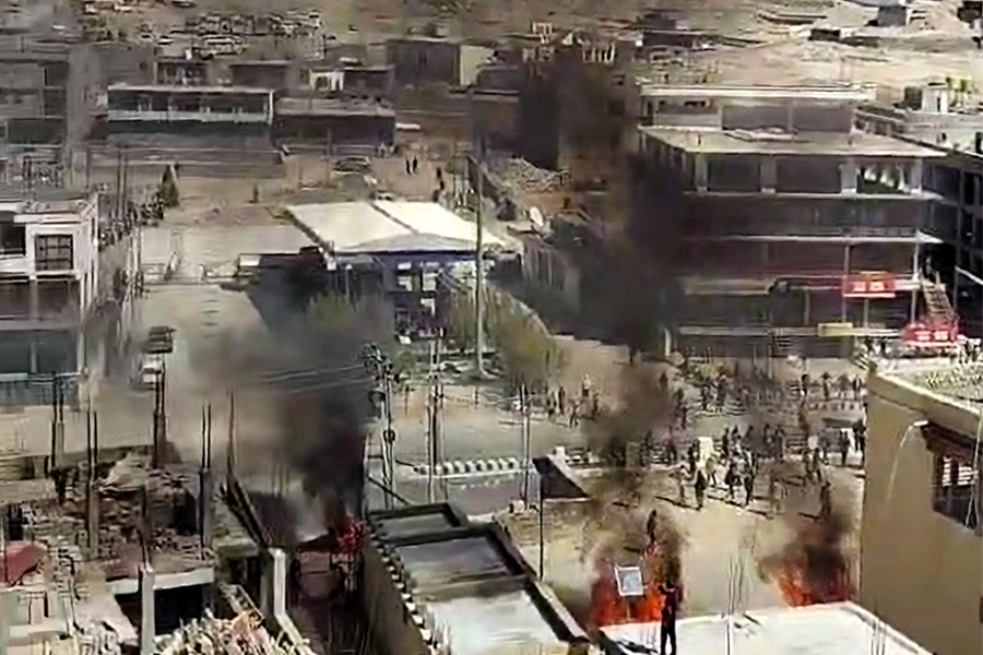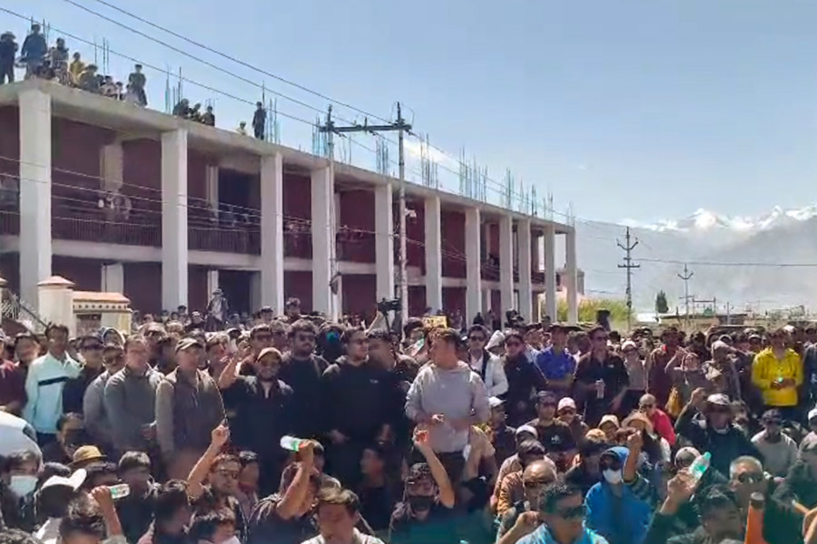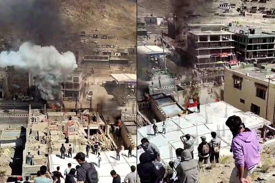 বাধ্য হয়ে সেপ্টেম্বরের মাঝামাঝি ফের অনশনে বসেন ওয়াংচুক। অনশন ১৫ দিনে পড়তেই সহিংস বিক্ষোভ যুব সমাজের একাংশ। ছবি: পিটিআই।