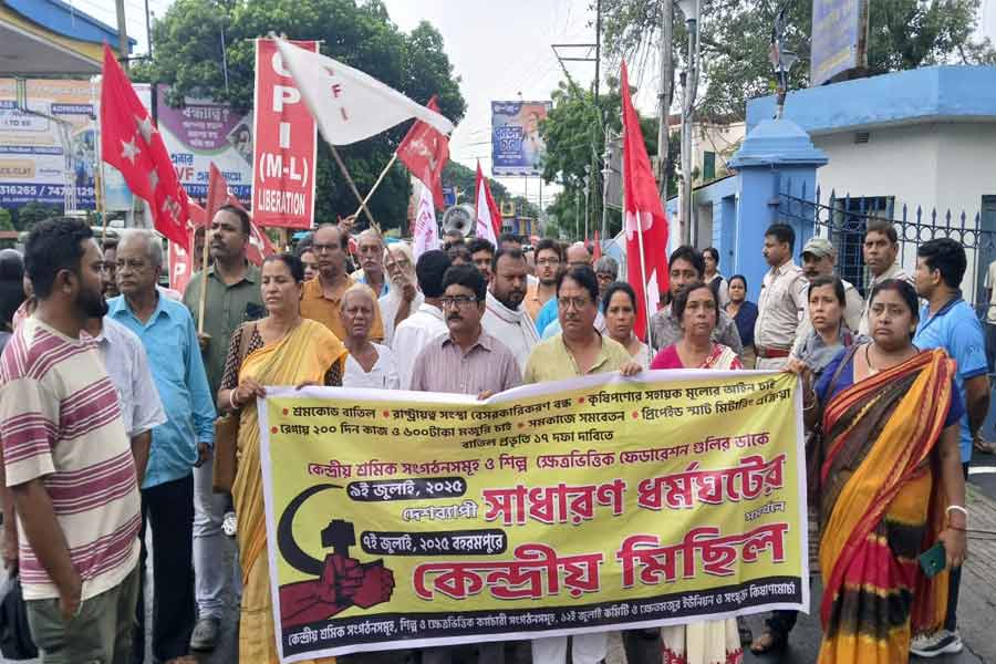 বহরমপুরের জেলা প্রশাসনিক ভবনের সামনে বিক্ষোভ বাম সংগঠনের। বহরমপুরের খাগড়া এলাকায় কোঅপারেটিভ ব্যাঙ্ক, ইউনিয়ন ব্যাঙ্ক, পাঞ্জাব ব্যাঙ্ক-সহ একাধিক ব্যাঙ্কের গেটে তালা ঝুলিয়ে দেওয়া হয়। পরে পুলিশ প্রশাসন ও শাসক দলের লোকজন সেসব তালা খুলে দেয়। স্বাভাবিক হয় পরিষেবা। ছবি: কল্যাণ চন্দ্র