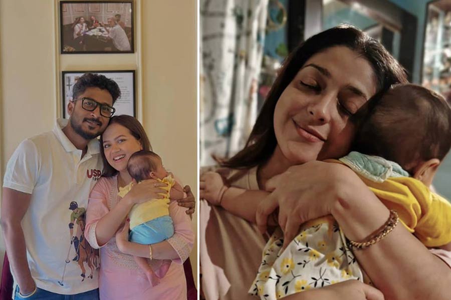 পাত্র বাড়ির পছন্দের নয়, তাই একপ্রকার পরিবার ছেড়েই বিয়ের পিঁড়িতে বসেছিলেন ছোটপর্দার 'খলনায়িকা' অহনা দত্ত। স্বামী দীপঙ্করের সঙ্গে ২০২৩ সালে আইনি বিয়ের মাত্র ২ বছরের মধ্যেই কোলে এসেছে ফুটফুটে কন্যা মীরা। চলতি বছরের জুলাই মাসে মাত্র ২১ বছরেই মাতৃত্বের স্বাদ পেয়েছেন অহনা। সাড়ে ৩ মাসের মেয়েকে বাড়িতে রেখে শুটিং ফ্লোরে ফিরেছেন অহনা। অন্যদিকে, ছোটপর্দার আরেক জুটি সুদীপ সরকার ও অনিন্দিতা রায়চৌধুরীও এবছর প্রথমবার বাবা-মা হয়েছেন। দু'জনের সংসার তিনজন হয়েছে কন্যারত্নের দৌলতে। মেয়েকে নিয়ে মহা আনন্দে সেলেব জুটি। ছবি: ইনস্টাগ্রাম।